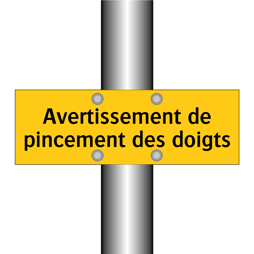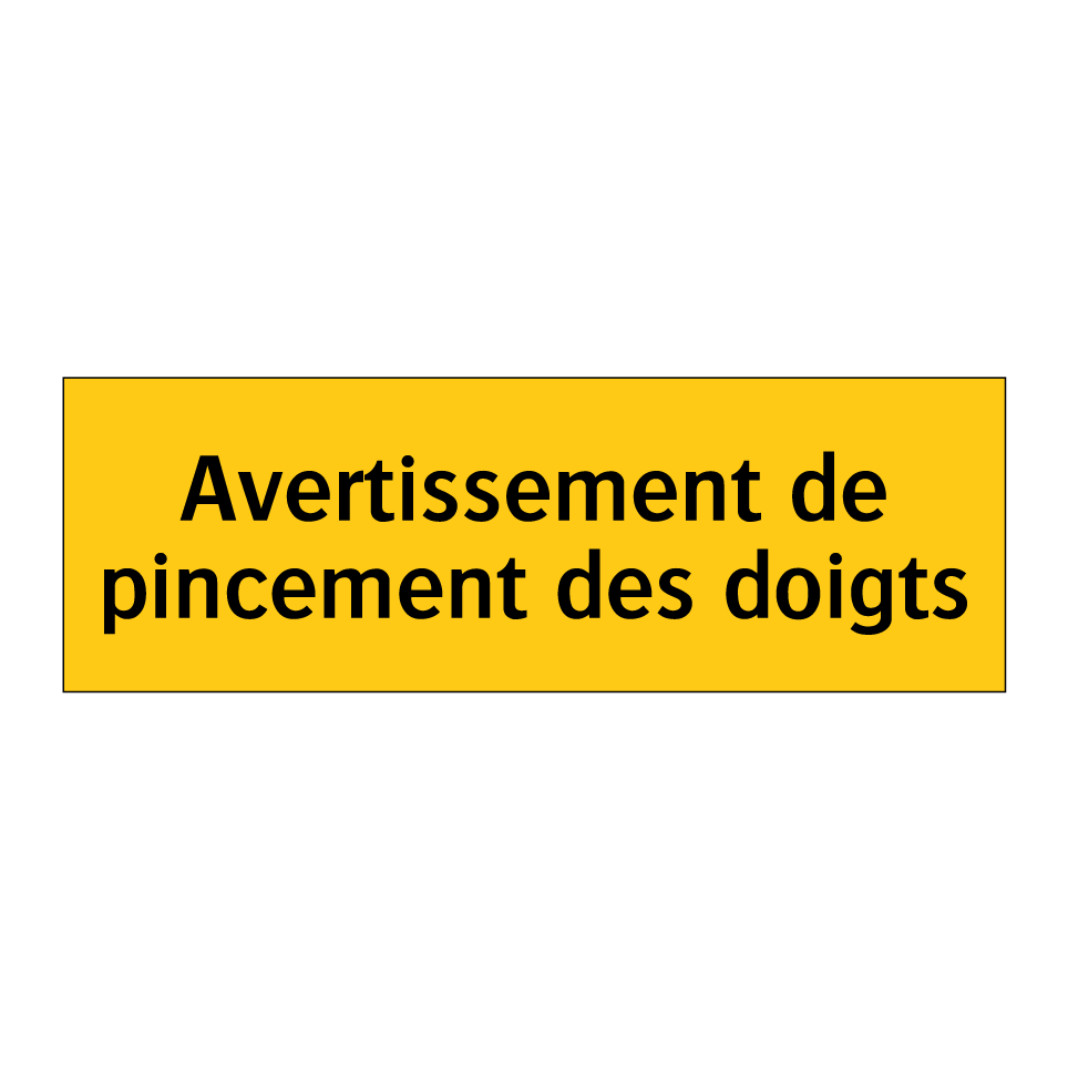 Panneau d'avertissement avec le texte : "Avertissement de pincement des doigts"