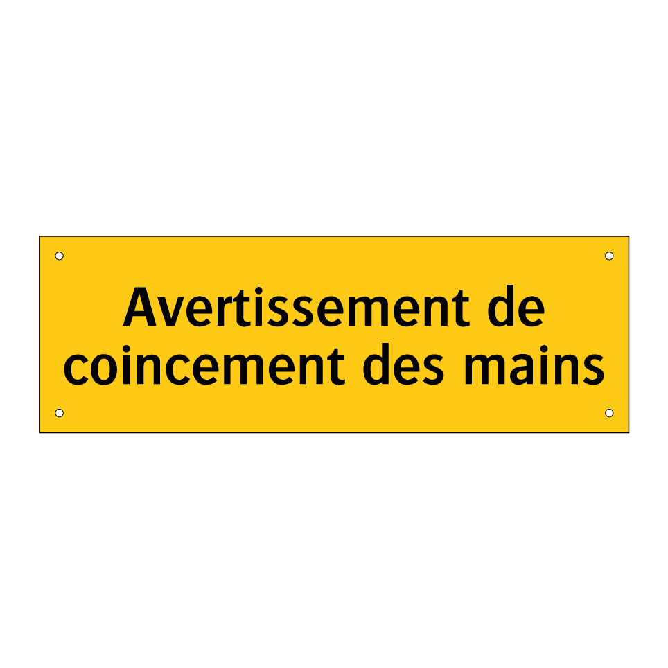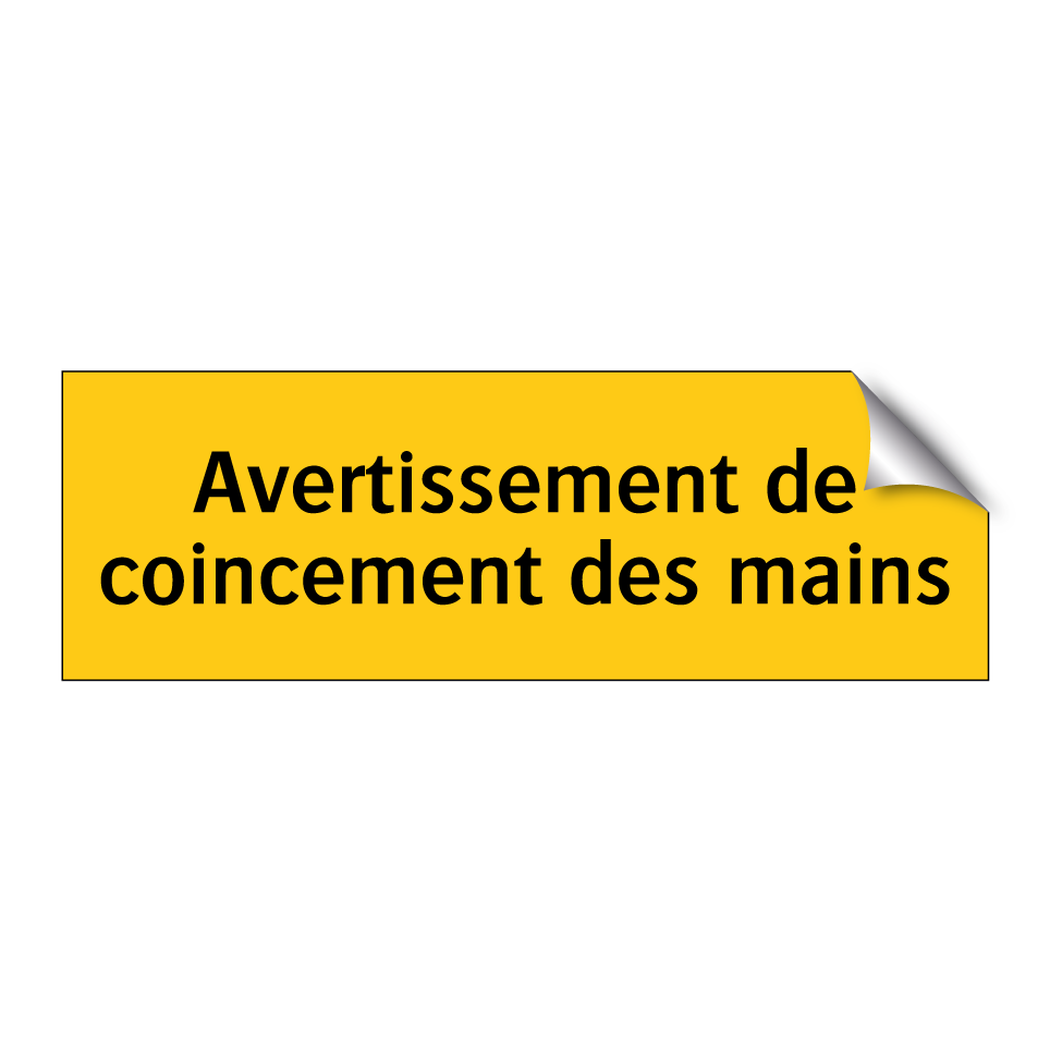 Panneau d'avertissement avec le texte : "Avertissement de coincement des mains"