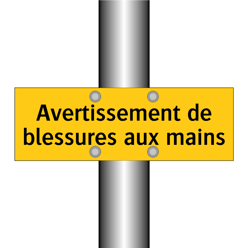 Panneau d'avertissement avec le texte : "Avertissement de blessures aux mains"
