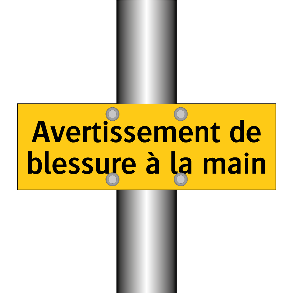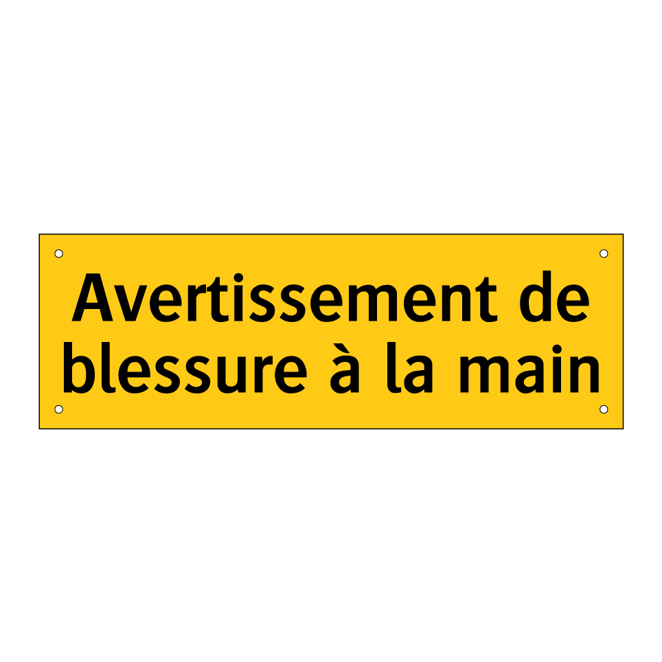 Panneau d'avertissement avec le texte : "Avertissement de blessure à la main"