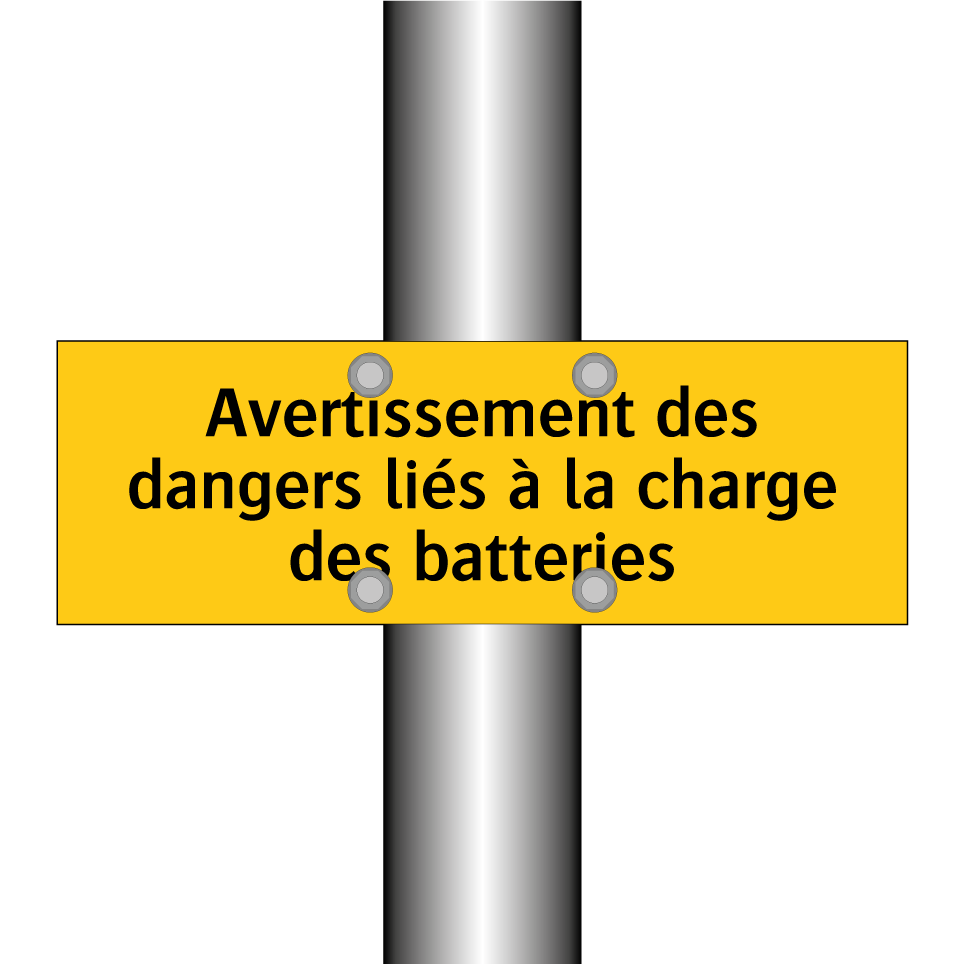 Panneau d'avertissement avec le texte : "Avertissement des dangers liés à la charge des batteries"