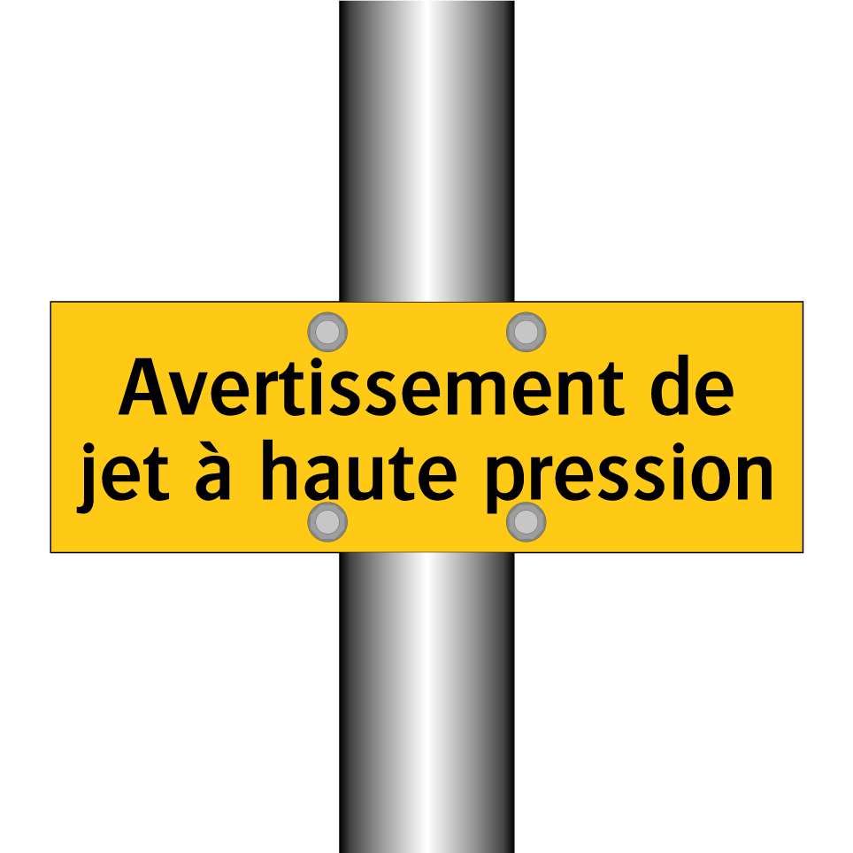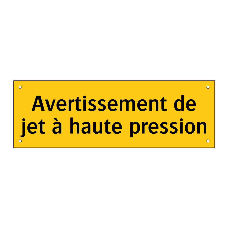 Panneau d'avertissement avec le texte : "Avertissement de jet à haute pression"
