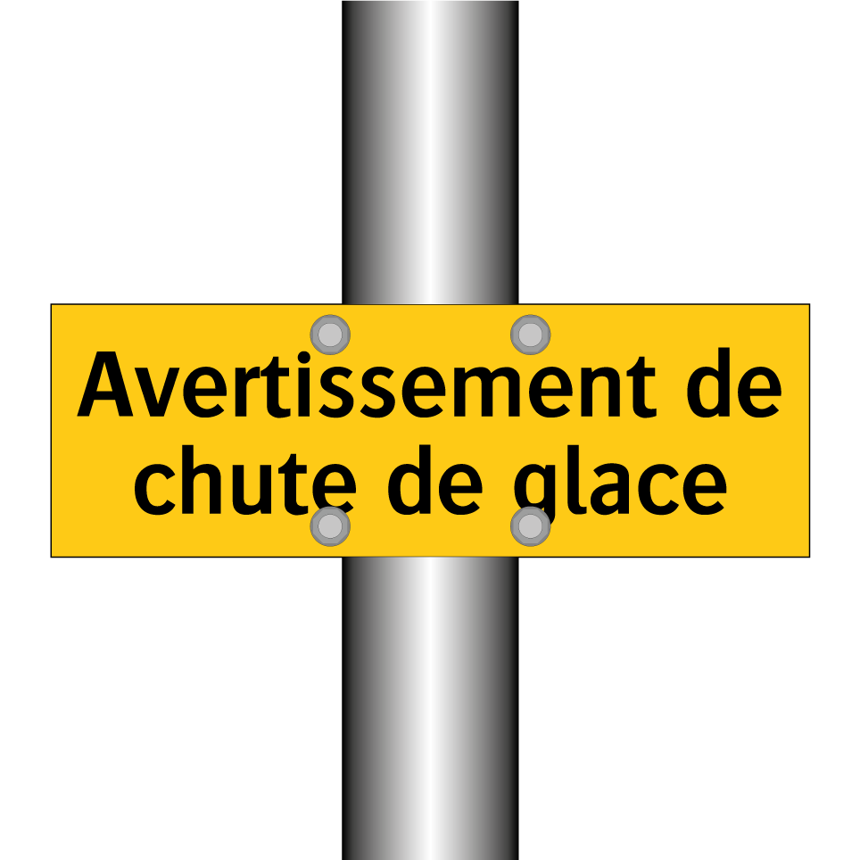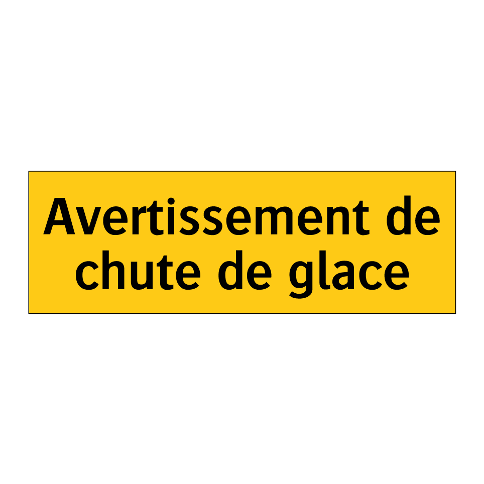 Panneau d'avertissement avec le texte : "Avertissement de chute de glace"