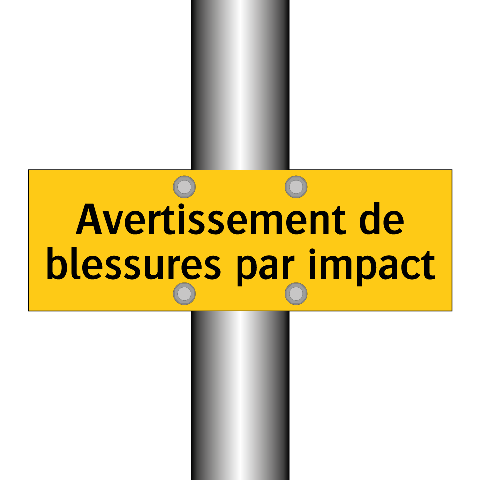 Panneau d'avertissement avec le texte : "Avertissement de blessures par impact"
