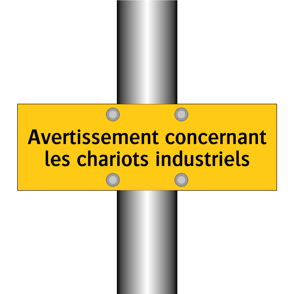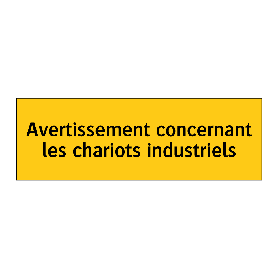 Panneau d'avertissement avec le texte : "Avertissement concernant les chariots industriels"