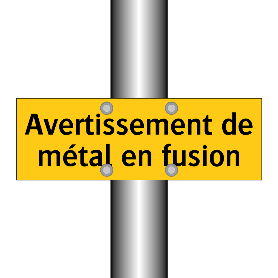 Panneau d'avertissement avec le texte : "Avertissement de métal en fusion"