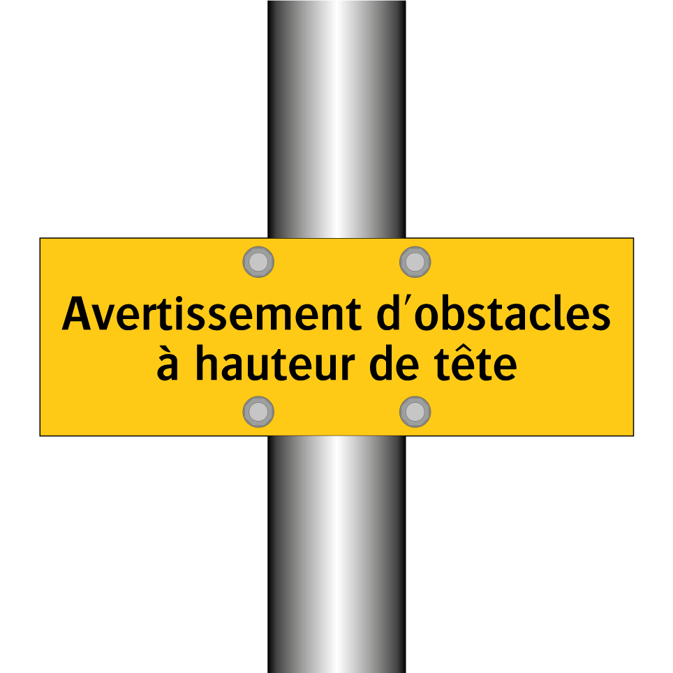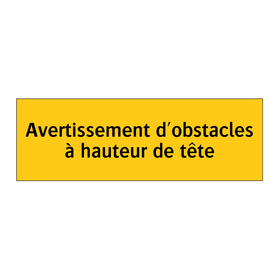 Panneau d'avertissement avec le texte : "Avertissement d'obstacles à hauteur de tête"
