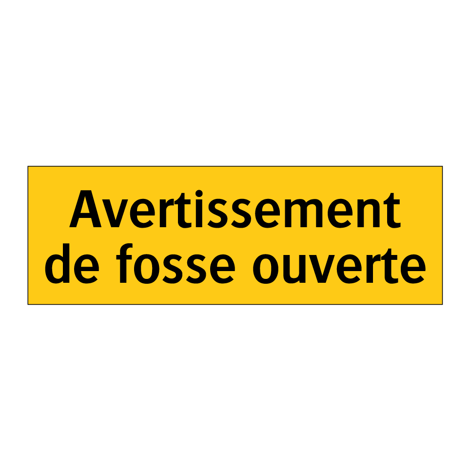 Panneau d'avertissement avec le texte : "Avertissement de fosse ouverte"