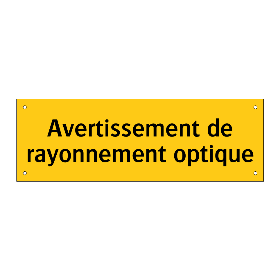 Panneau d'avertissement avec le texte : "Avertissement de rayonnement optique"