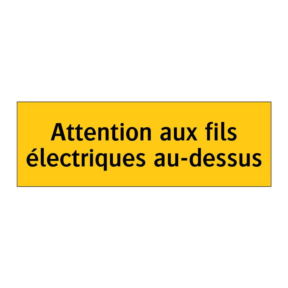 Panneau d'avertissement avec le texte : "Attention aux fils électriques au-dessus"