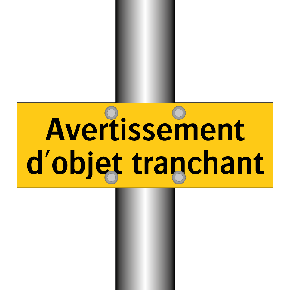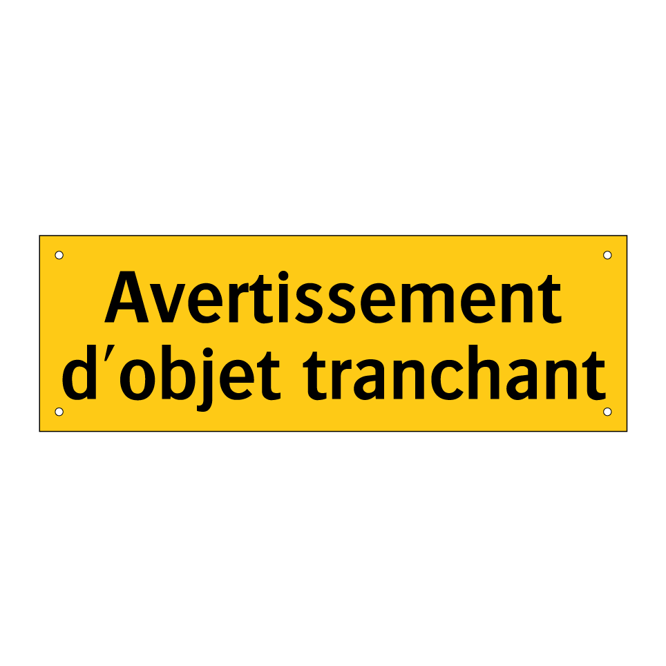 Panneau d'avertissement avec le texte : "Avertissement d'objet tranchant"