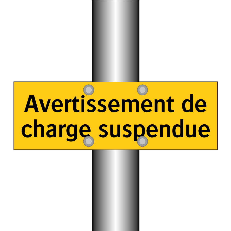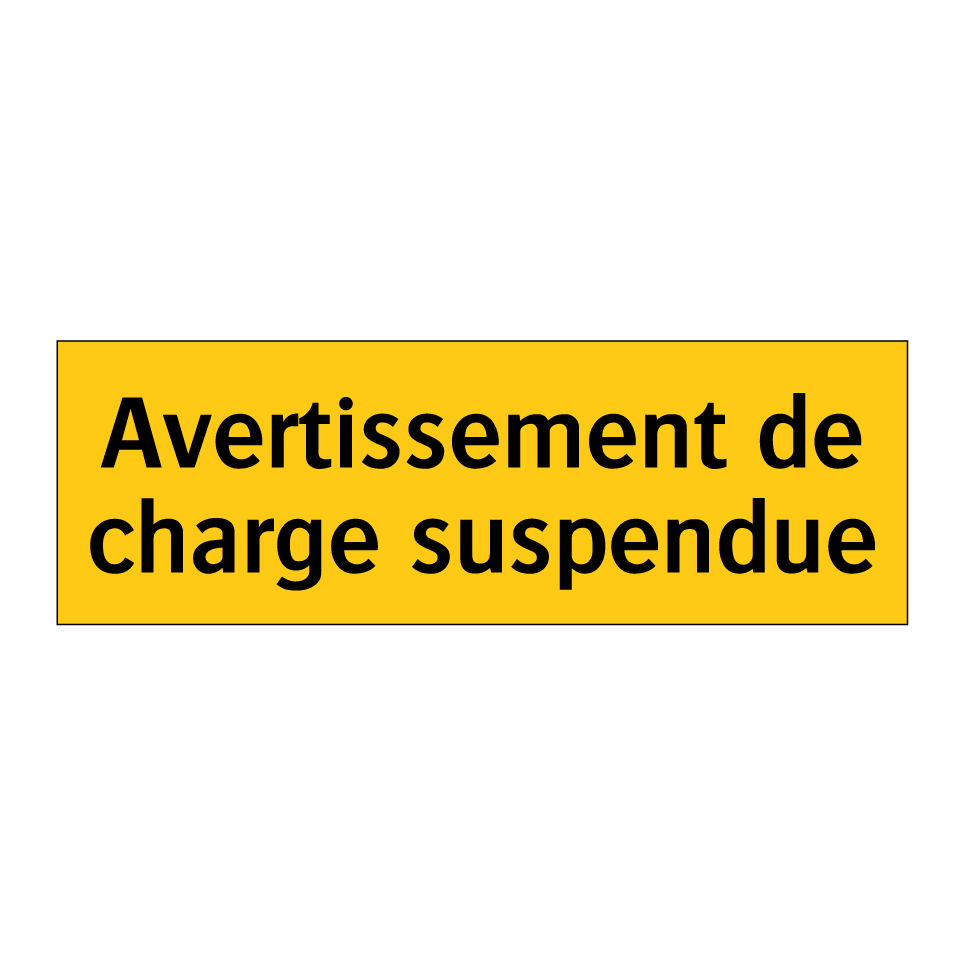 Panneau d'avertissement avec le texte : "Avertissement de charge suspendue"