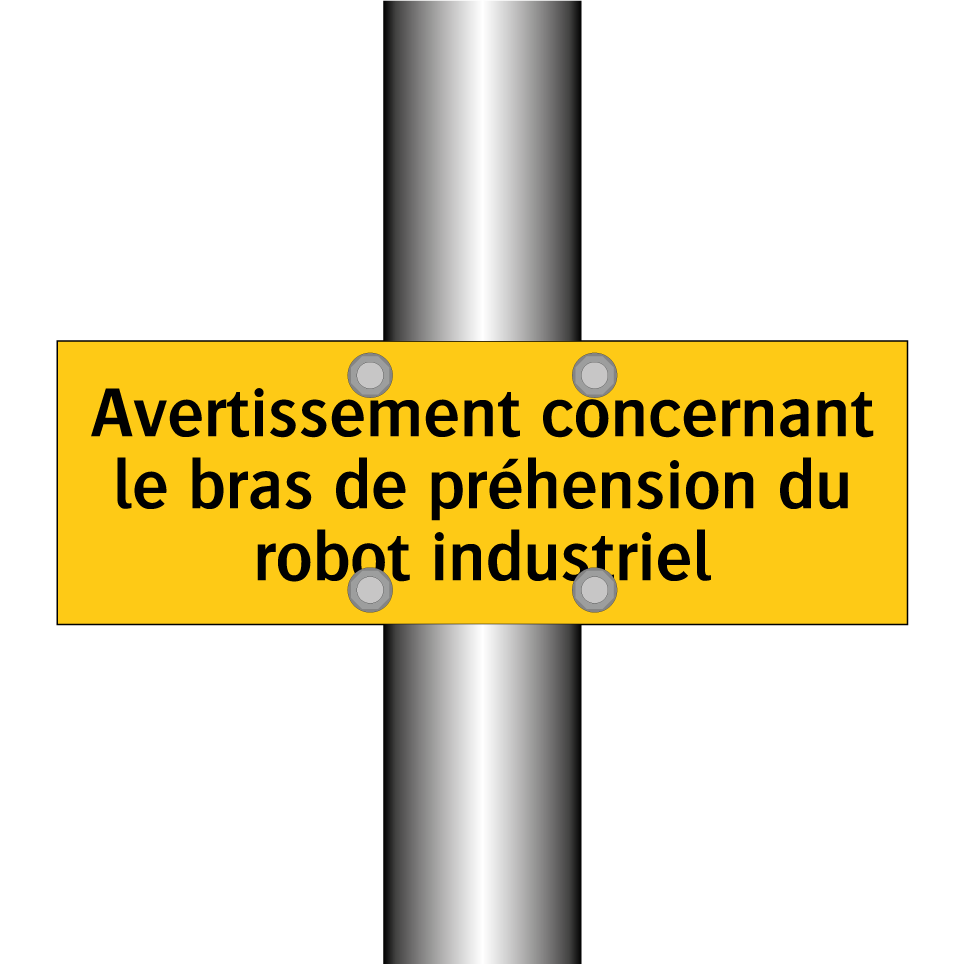 Panneau d'avertissement avec le texte : "Avertissement concernant le bras de préhension du robot industriel"