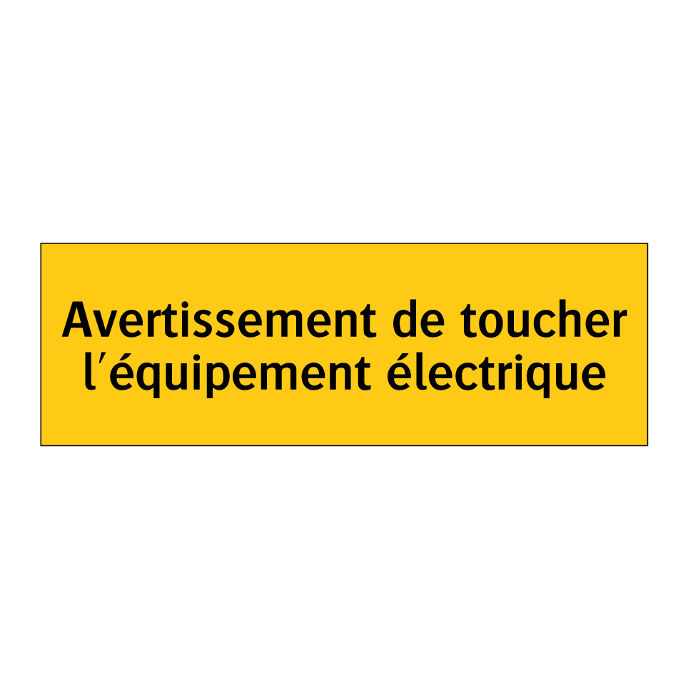 Panneau d'avertissement avec le texte : "Avertissement de toucher l'équipement électrique"