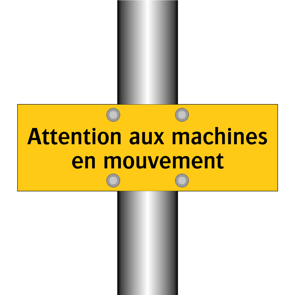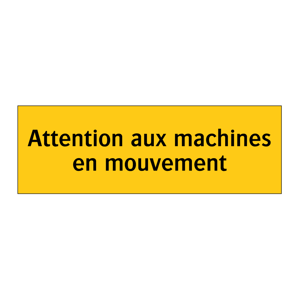 Panneau d'avertissement avec le texte : "Attention aux machines en mouvement"