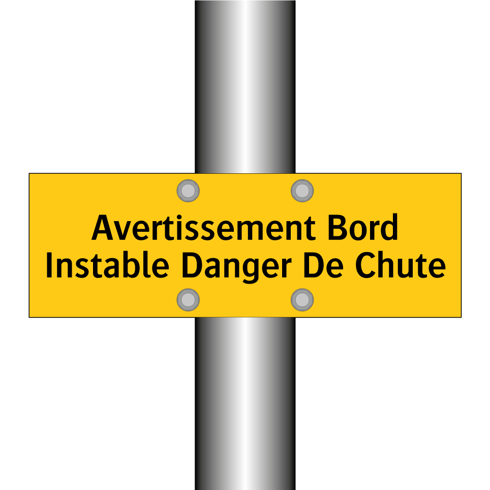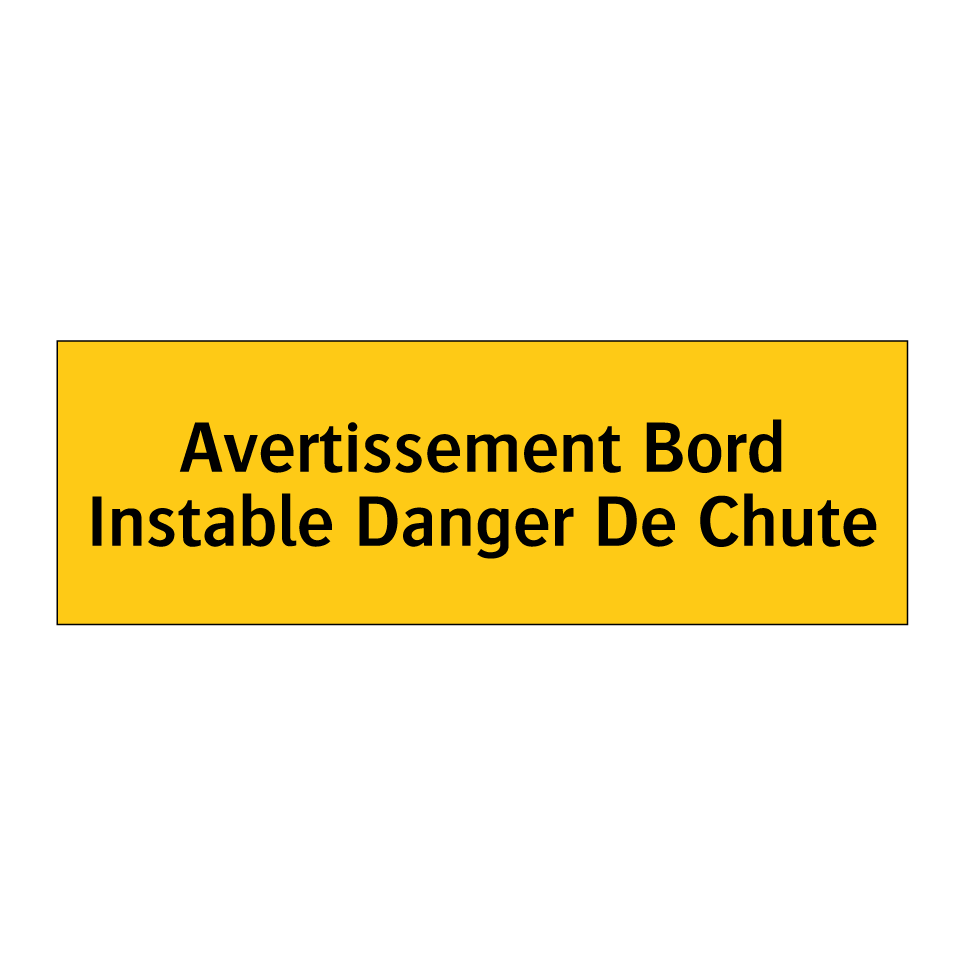 Panneau d'avertissement avec le texte : "Avertissement Bord Instable Danger De Chute"