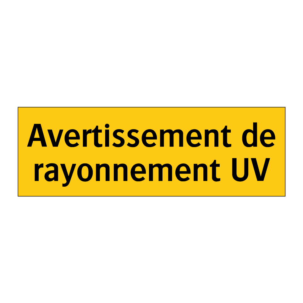 Panneau d'avertissement avec le texte : "Avertissement de rayonnement UV"