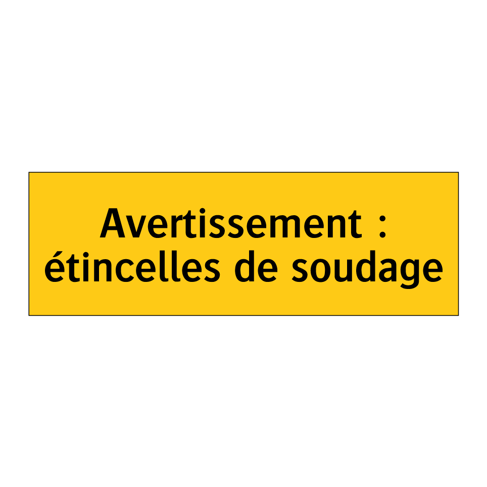 Panneau d'avertissement avec le texte : "Avertissement : étincelles de soudage"