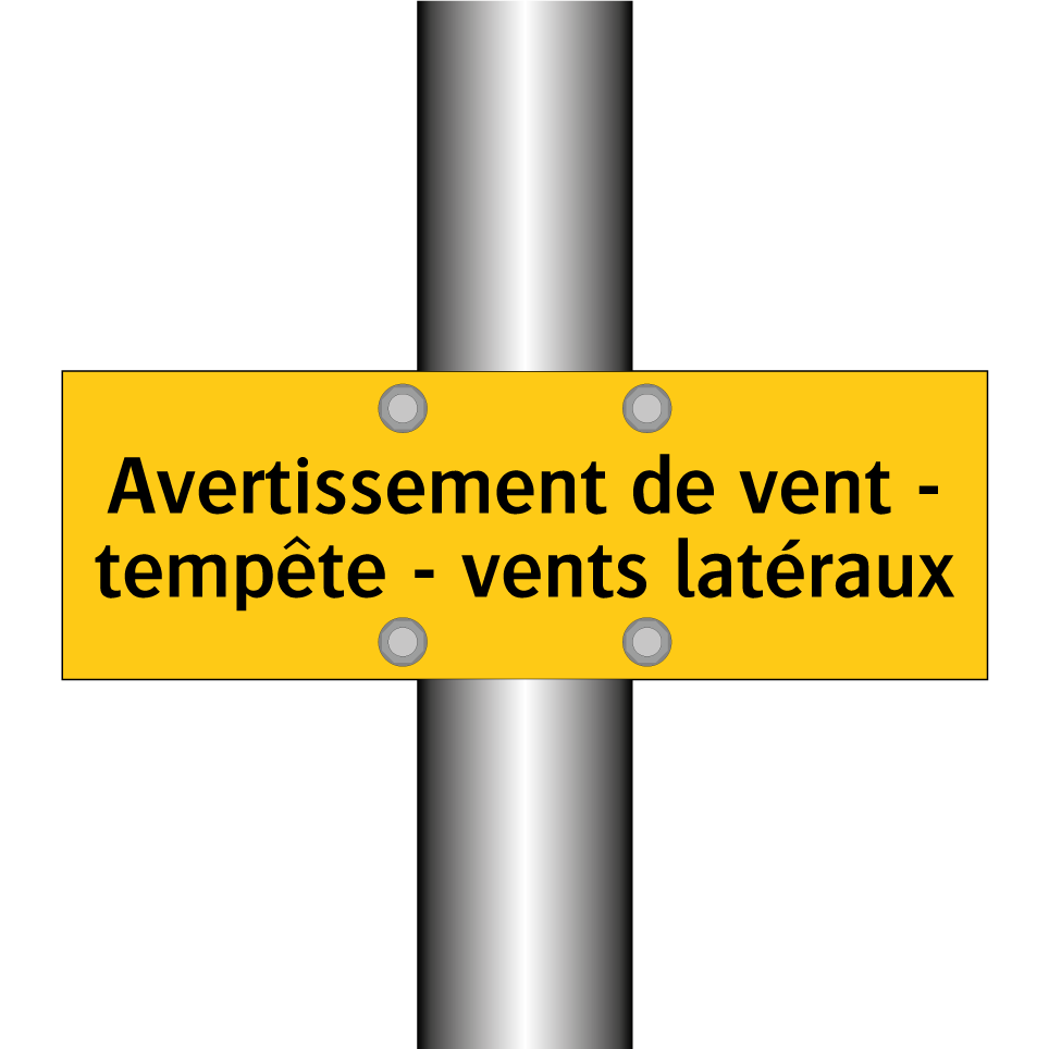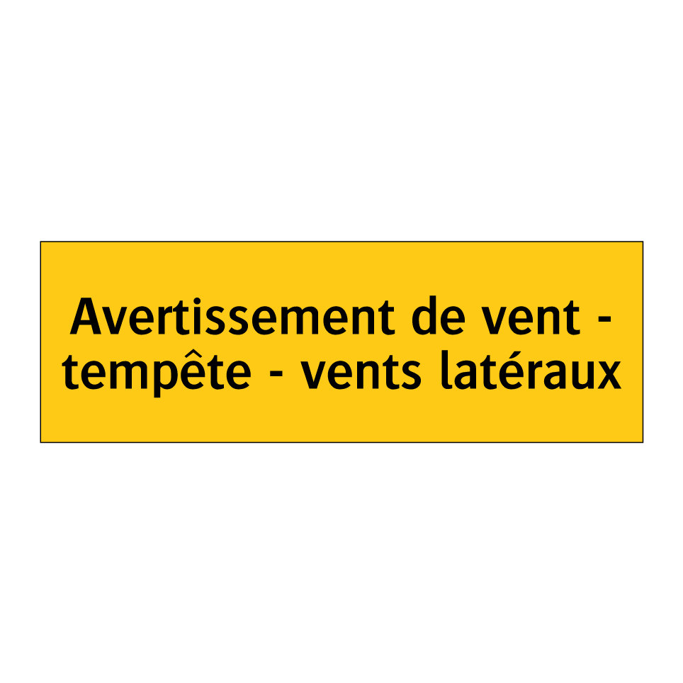 Panneau d'avertissement avec le texte : "Avertissement de vent - tempête - vents latéraux"