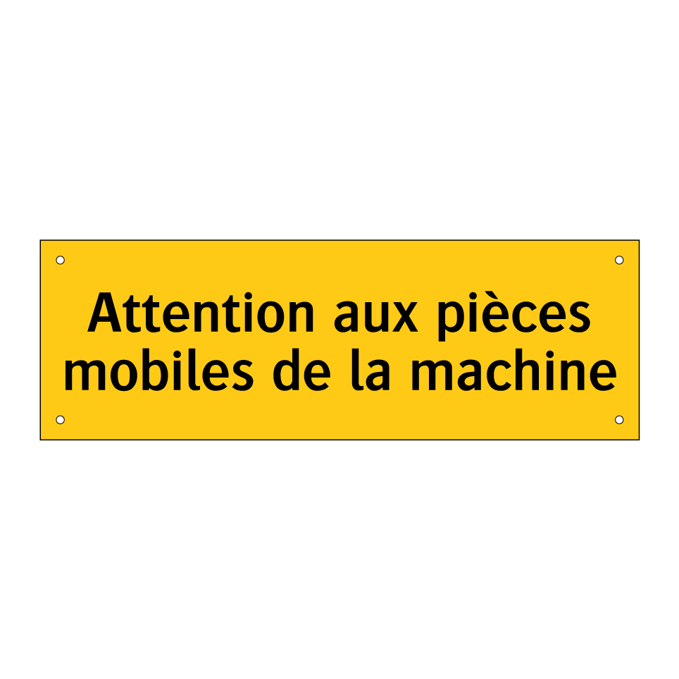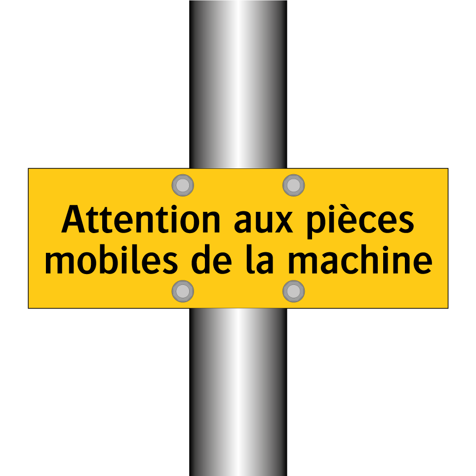 Panneau d'avertissement avec le texte : "Attention aux pièces mobiles de la machine"