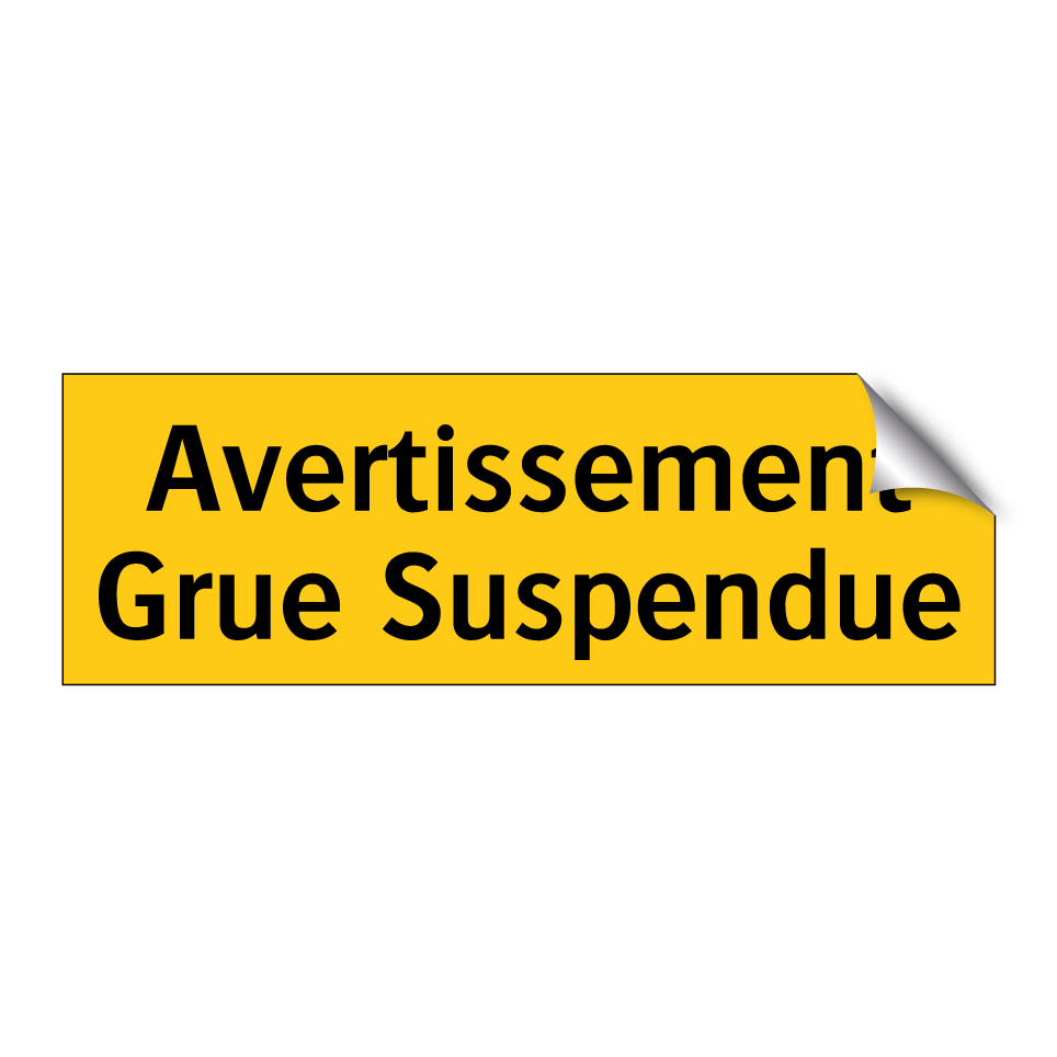 Panneau d'avertissement avec le texte : "Avertissement Grue Suspendue"