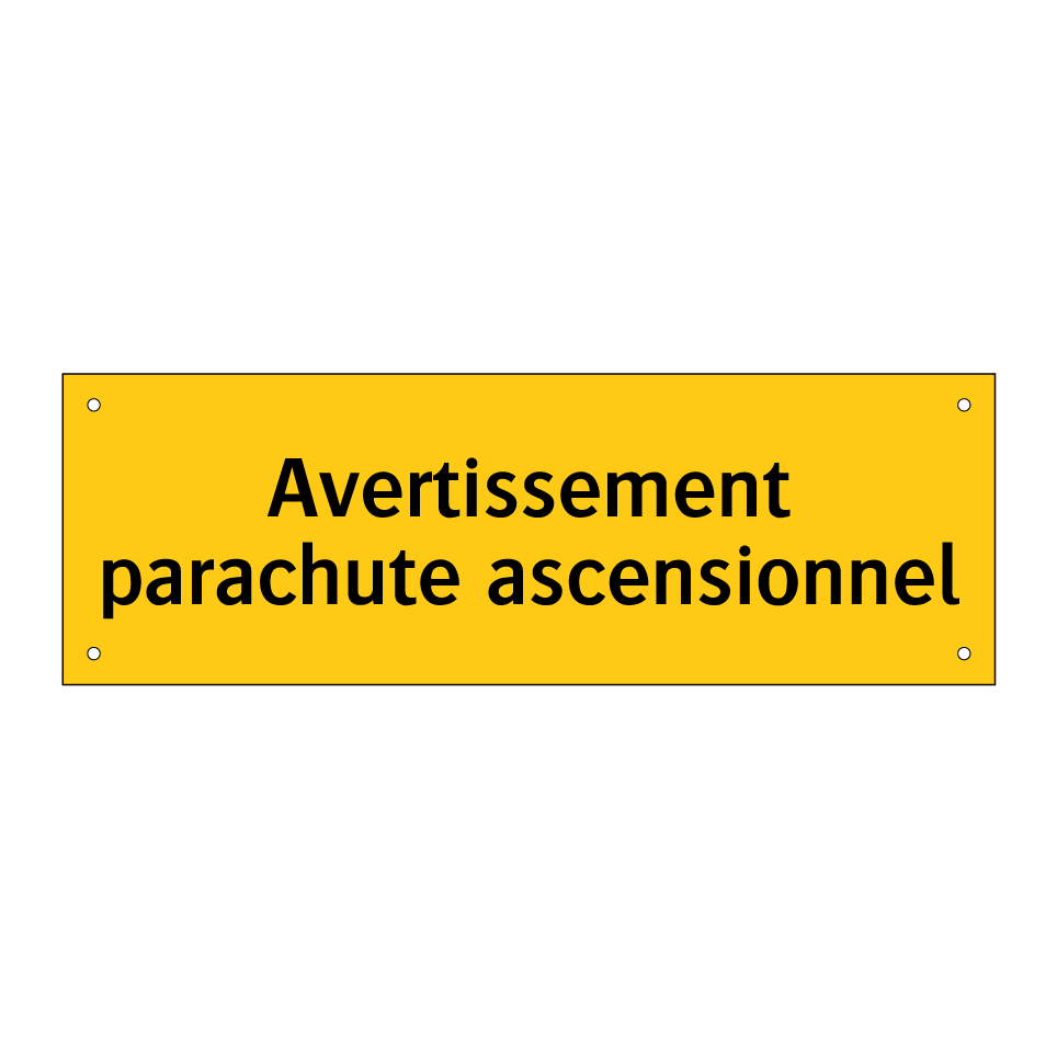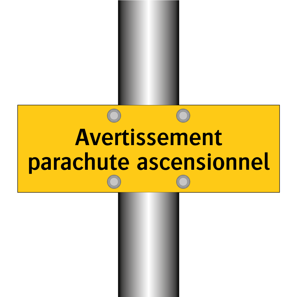 Panneau d'avertissement avec le texte : "Avertissement parachute ascensionnel"