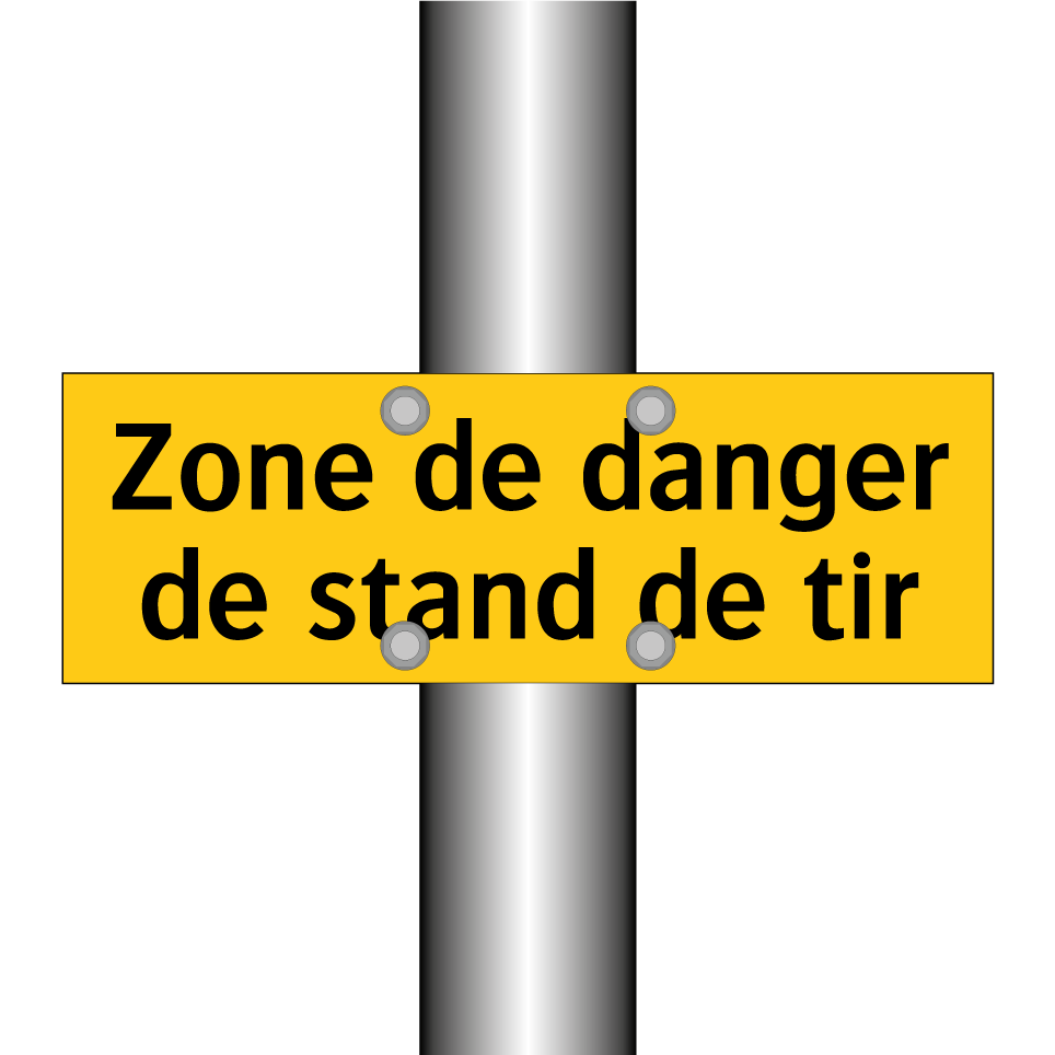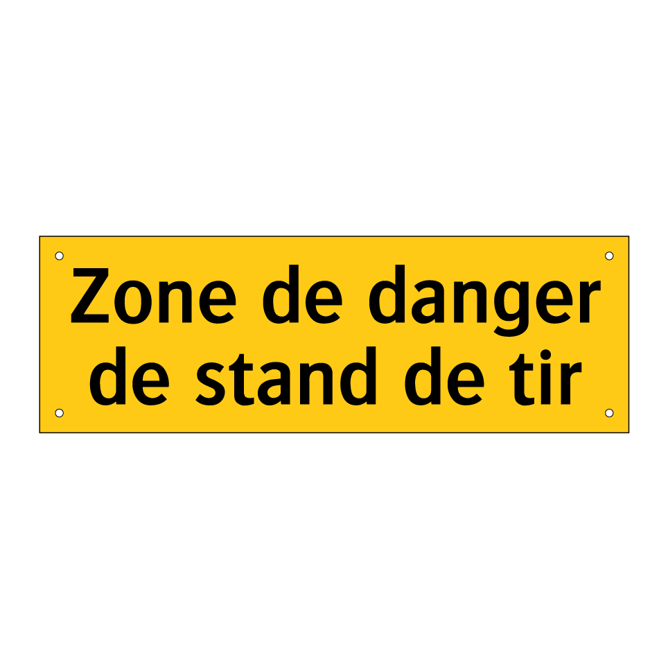 Panneau d'avertissement avec le texte : "Zone de danger de stand de tir"