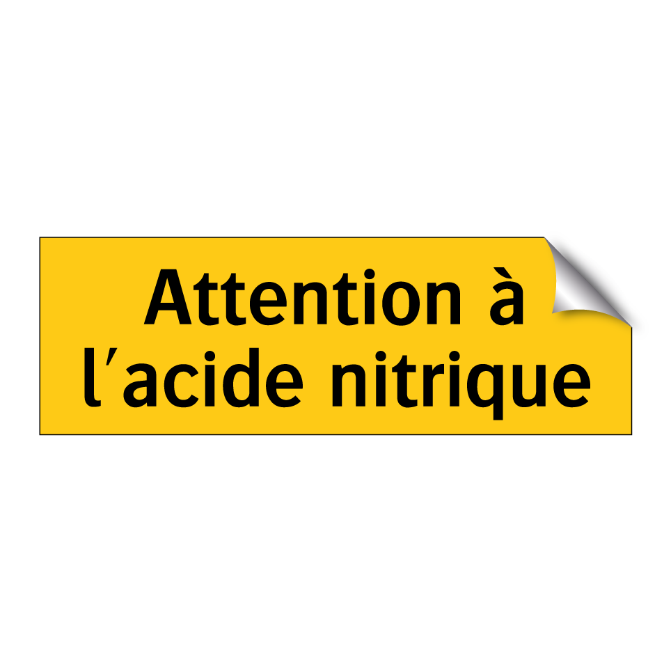 Panneau d'avertissement avec le texte : "Attention à l'acide nitrique"