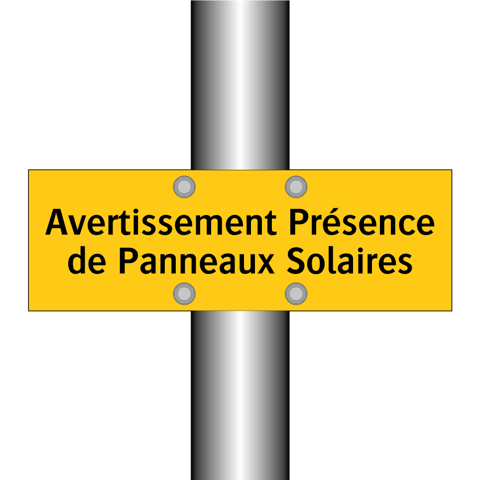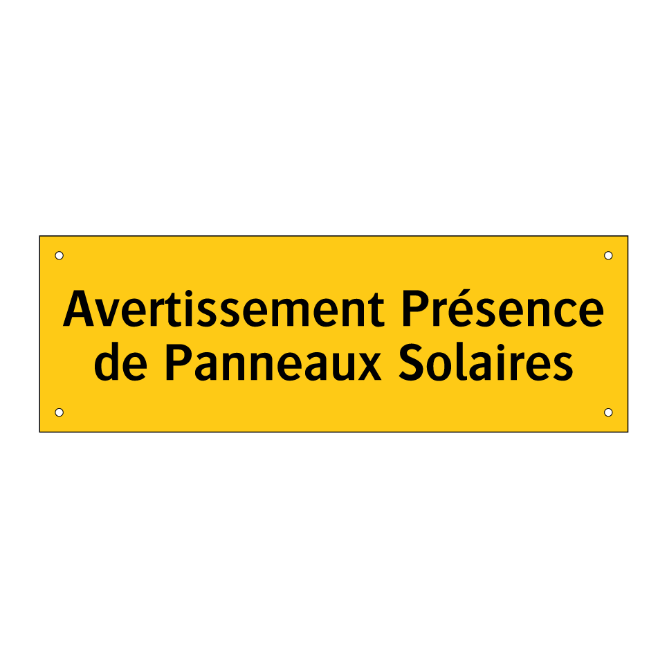 Panneau d'avertissement avec le texte : "Avertissement Présence de Panneaux Solaires"