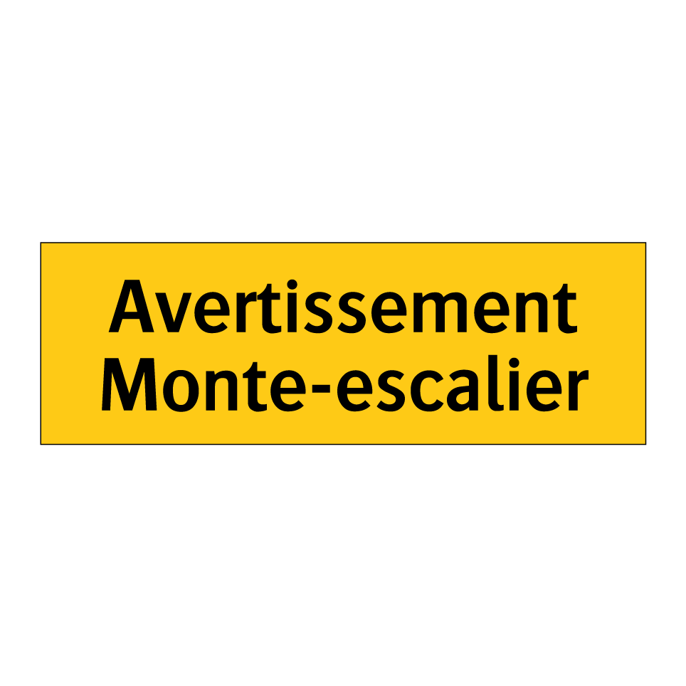 Panneau d'avertissement avec le texte : "Avertissement Monte-escalier"