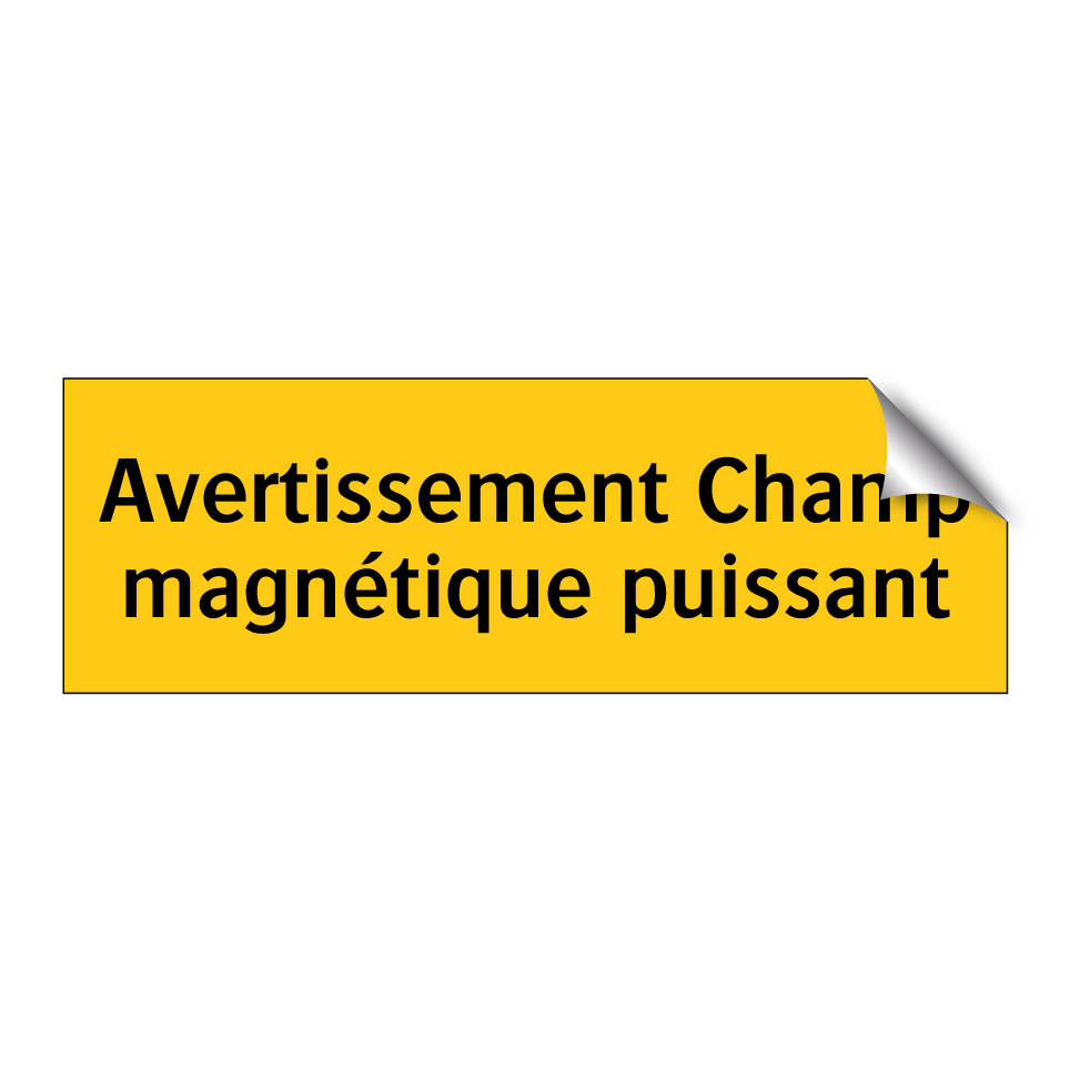Panneau d'avertissement avec le texte : "Avertissement Champ magnétique puissant"