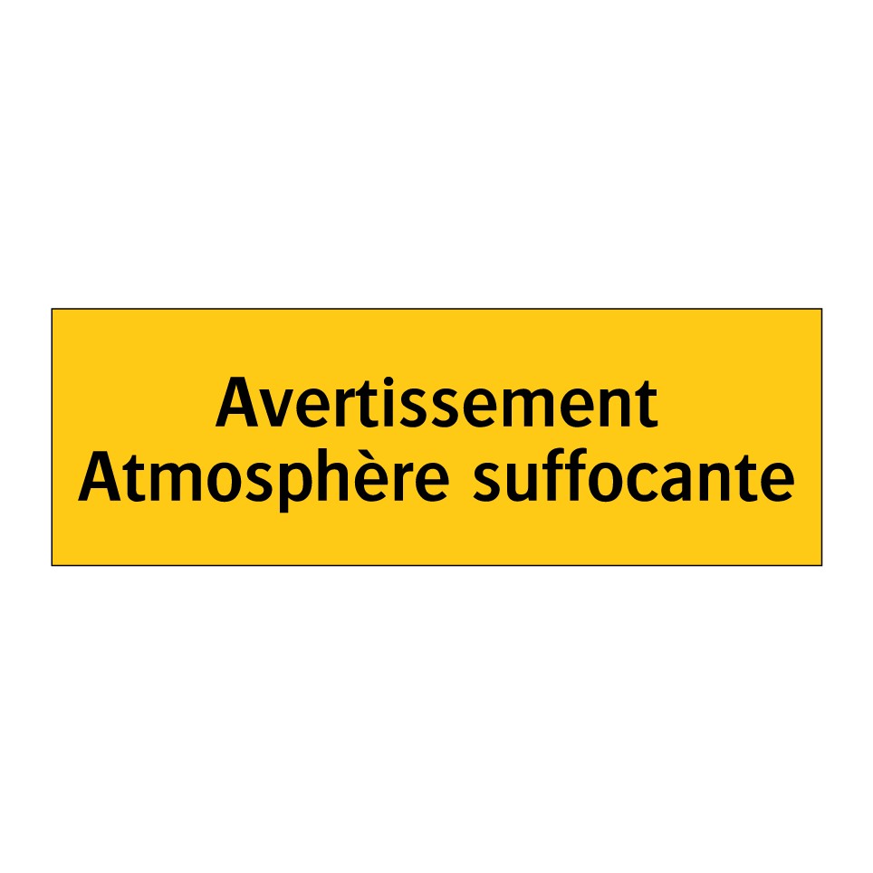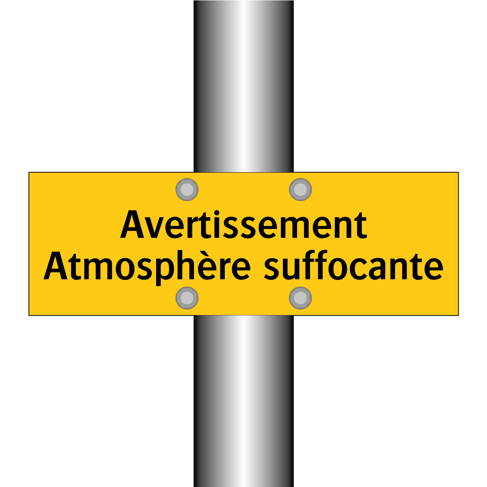 Panneau d'avertissement avec le texte : "Avertissement Atmosphère suffocante"