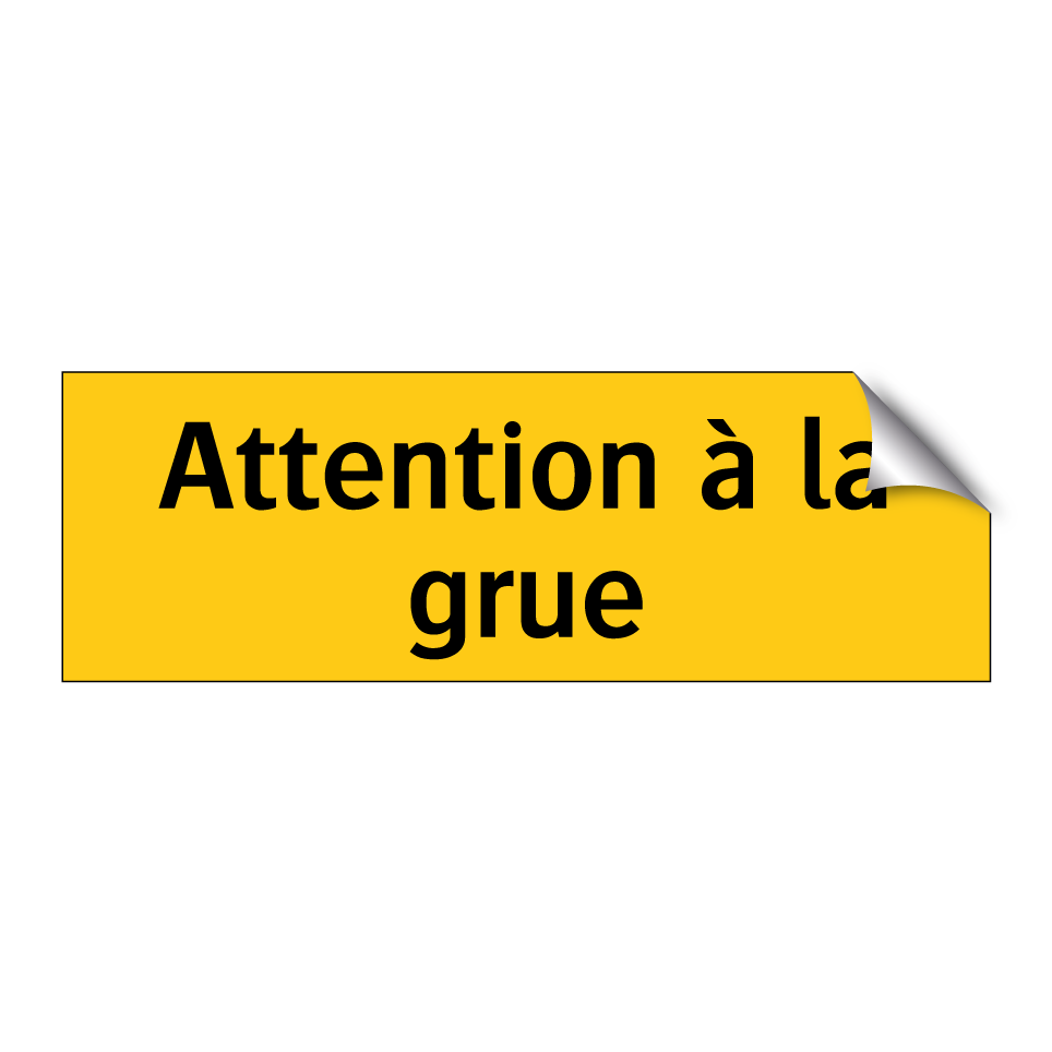Panneau d'avertissement avec le texte : "Attention à la grue"