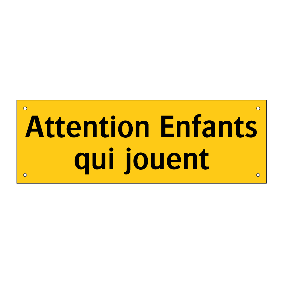 Panneau d'avertissement avec le texte : "Attention Enfants qui jouent"