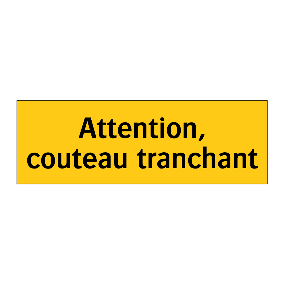 Panneau d'avertissement avec le texte : "Attention, couteau tranchant"
