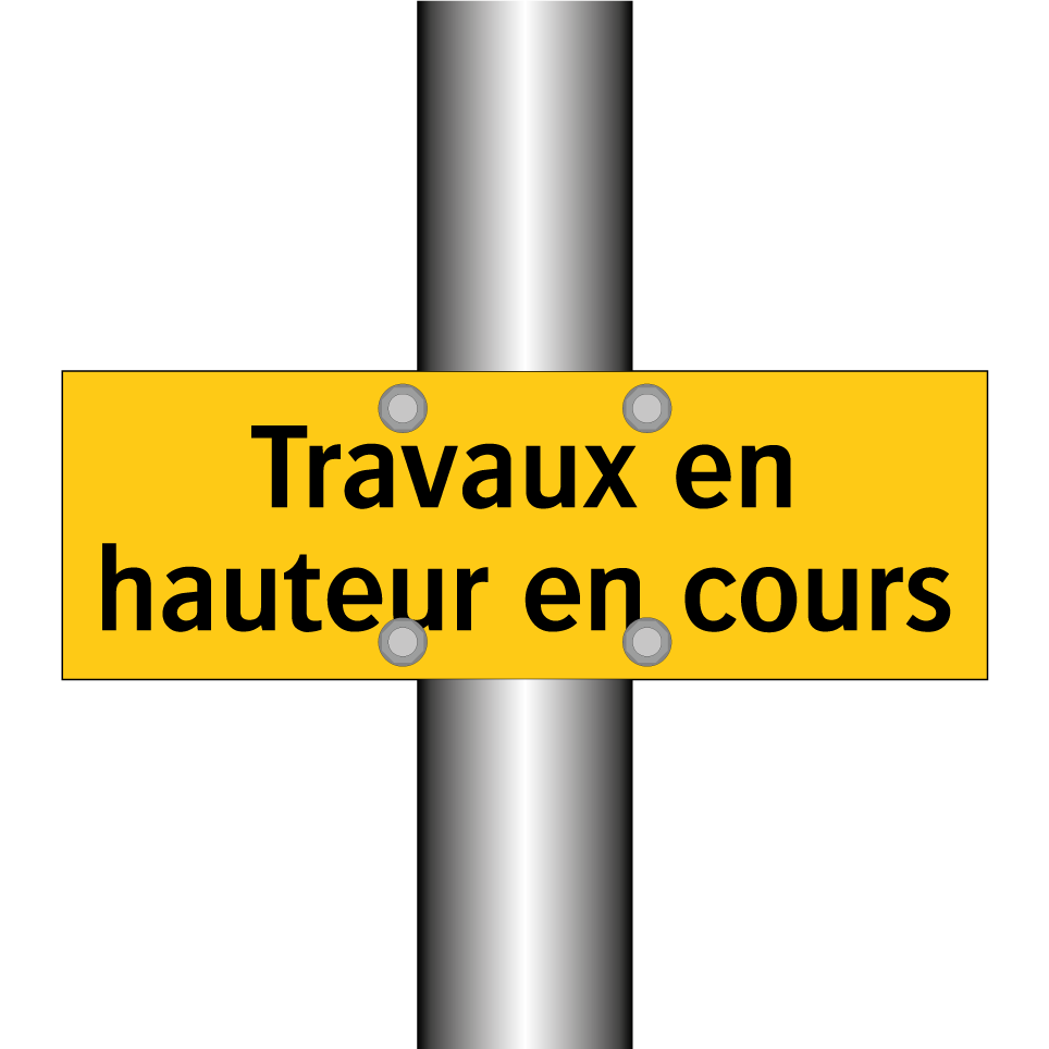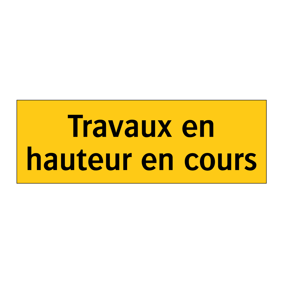 Panneau d'avertissement avec le texte : "Travaux en hauteur en cours"