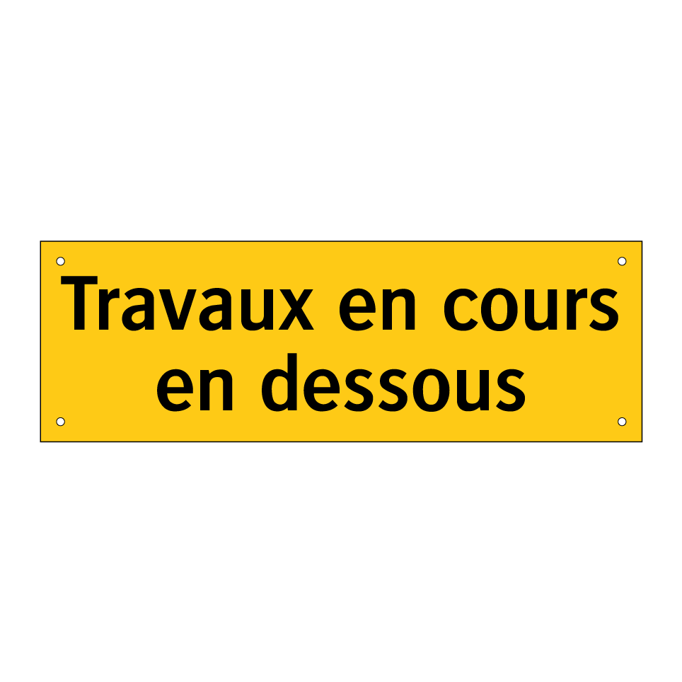 Ce panneau d'avertissement est essentiel pour garantir la sécurité dans les zones de construction. Idéal pour être placé dans des environnements où des travaux sont en cours, il informe les passants et les travailleurs des activités en dessous. Ce panneau est parfait pour les chantiers de construction, les zones industrielles ou tout autre lieu nécessitant une attention particulière. Grâce à sa couleur jaune vif et son texte noir, il attire immédiatement l'attention, assurant que le message est bien reçu. Utilisez ce panneau pour prévenir les risques potentiels et maintenir un environnement sécurisé.