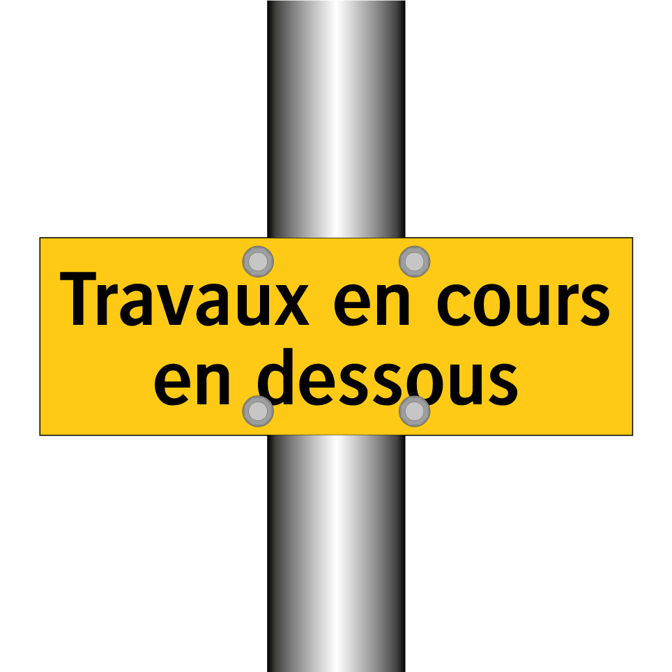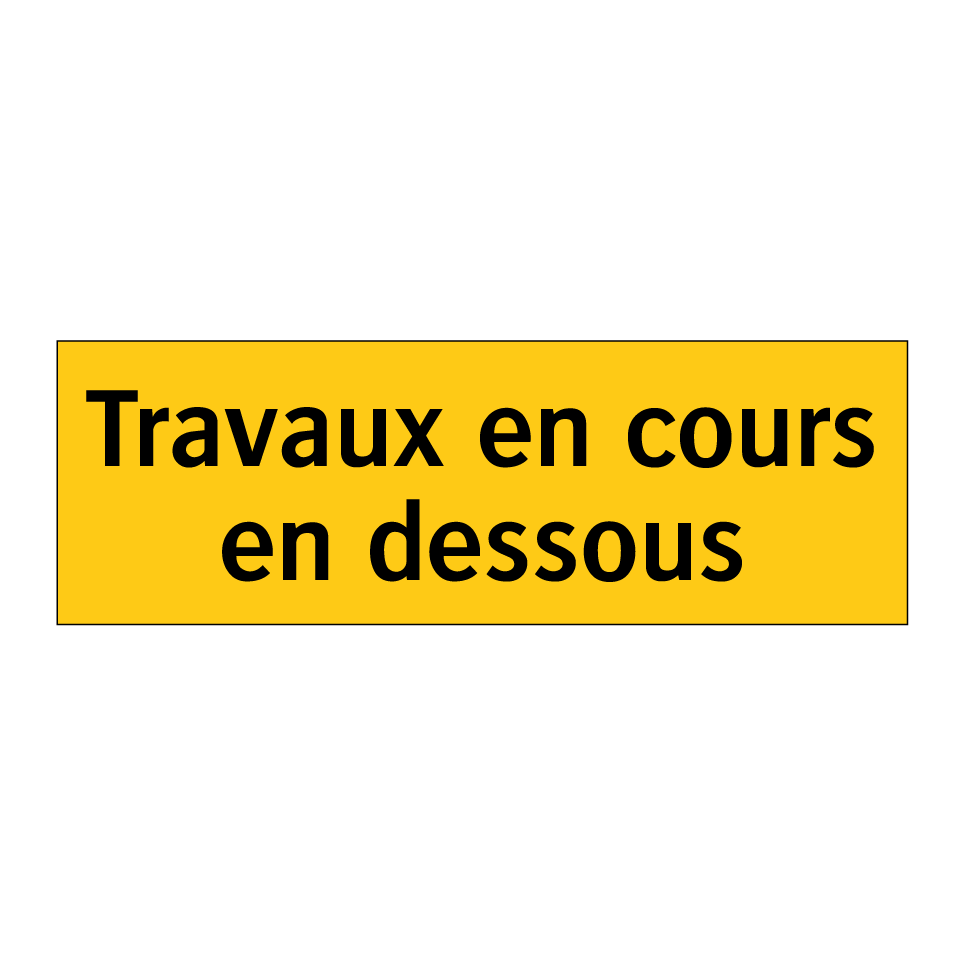 Panneau d'avertissement avec le texte : "Travaux en cours en dessous"