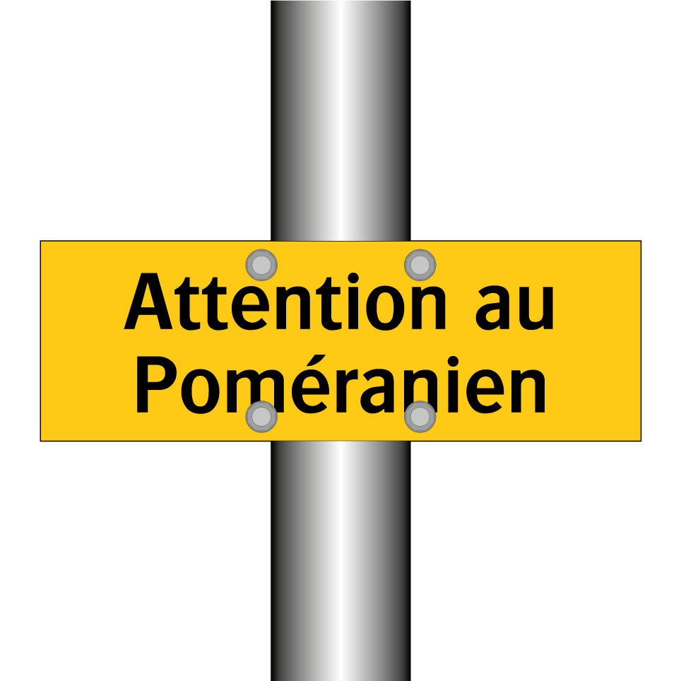 Panneau d'avertissement avec le texte : "Attention au Poméranien"