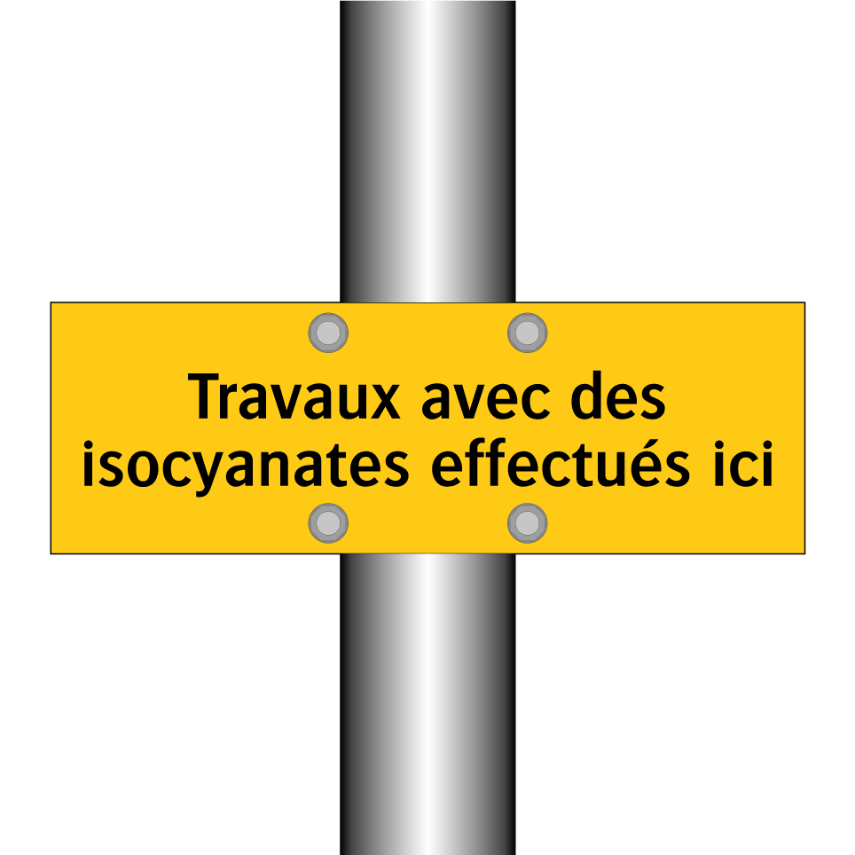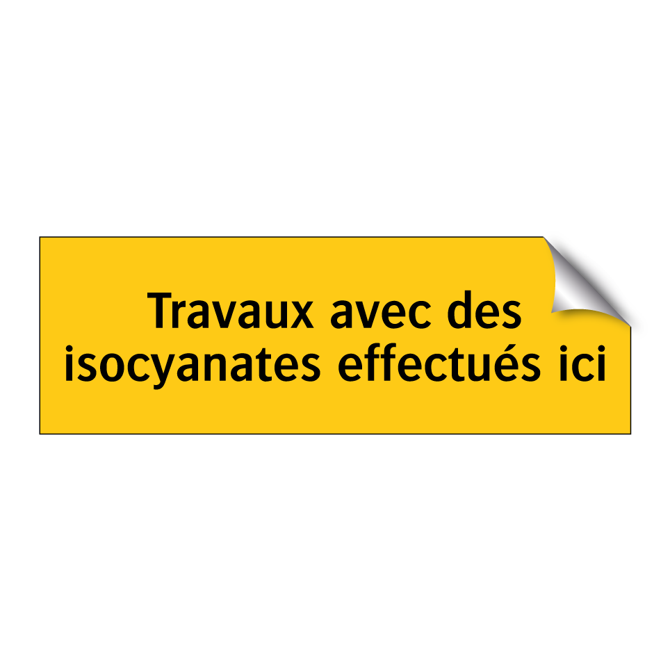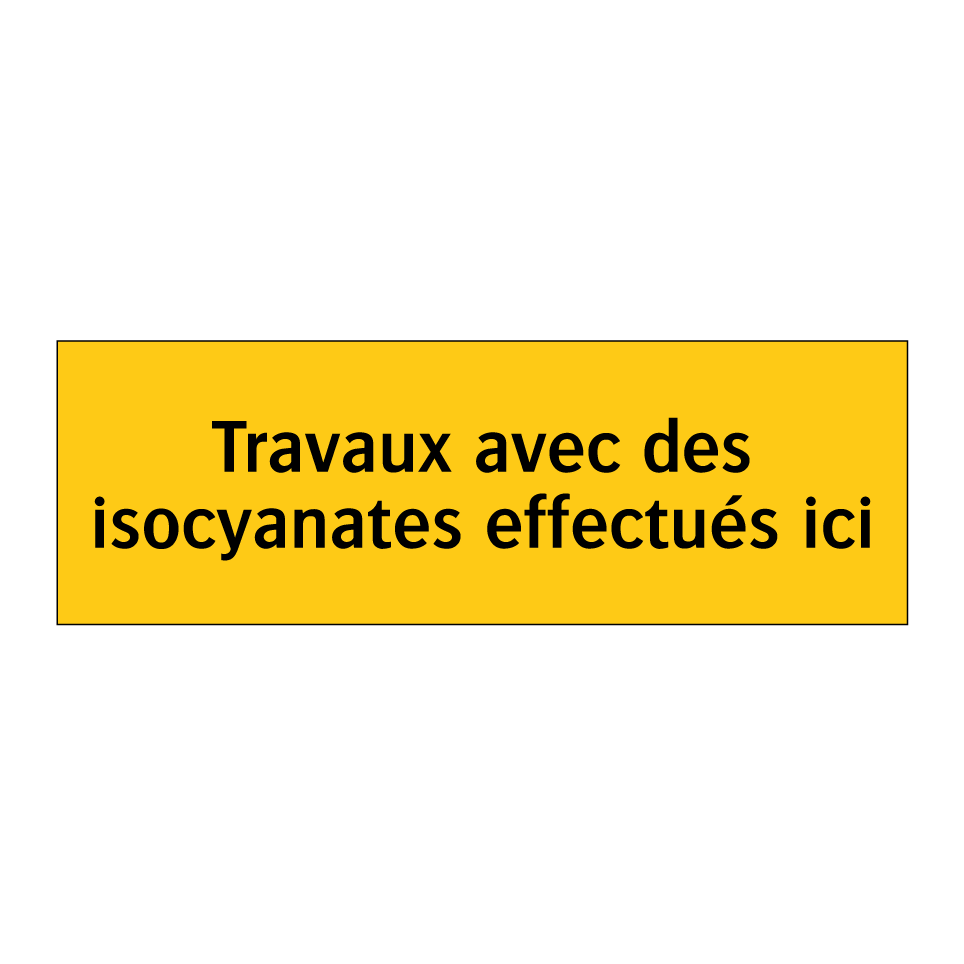 Panneau d'avertissement avec le texte : "Travaux avec des isocyanates effectués ici"
