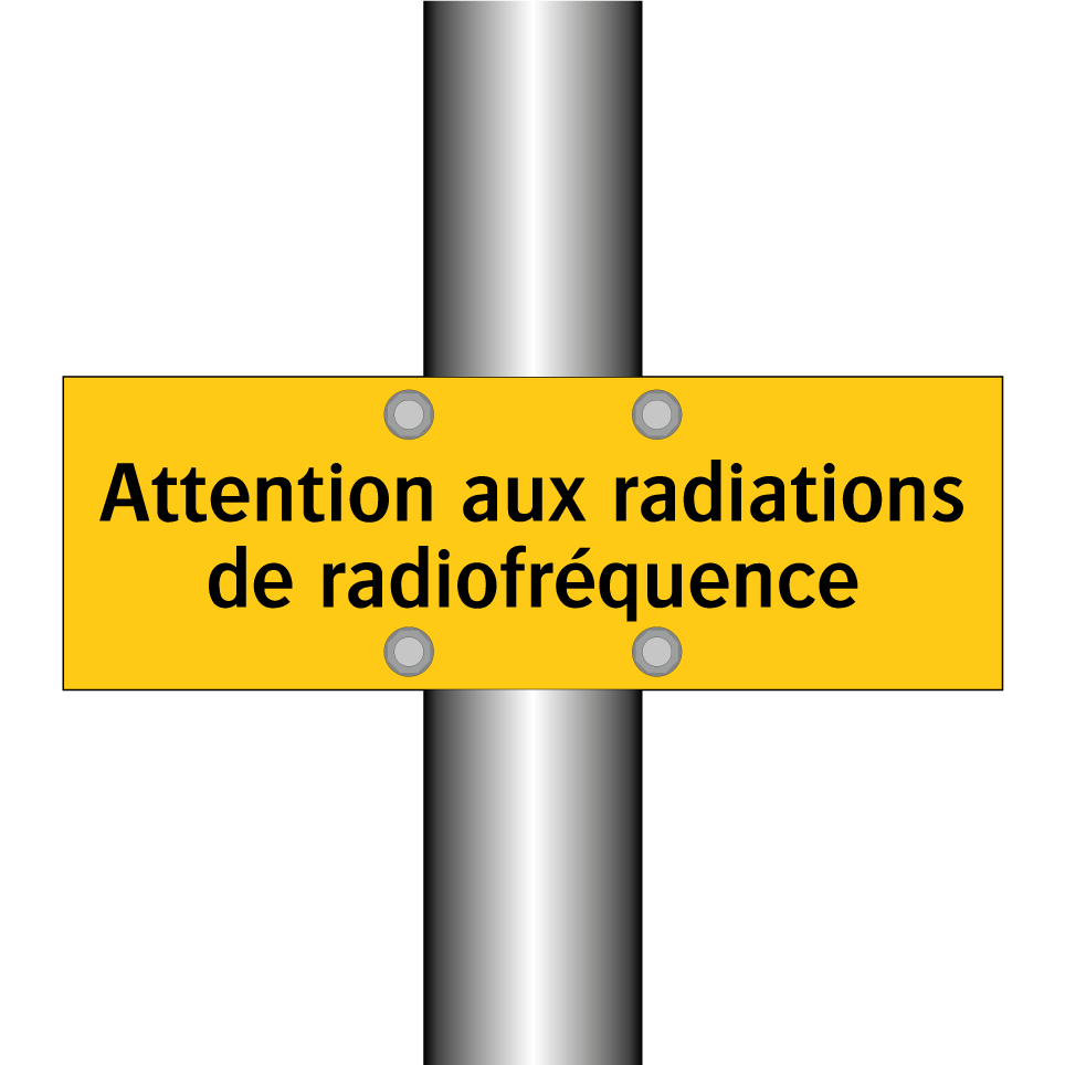 Panneau d'avertissement avec le texte : "Attention aux radiations de radiofréquence"