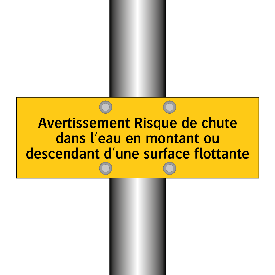 Panneau d'avertissement avec le texte : "Avertissement Risque de chute dans l'eau en montant ou descendant d'une surface flottante"