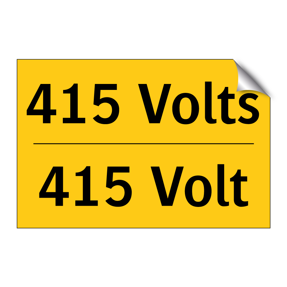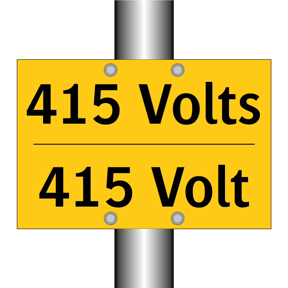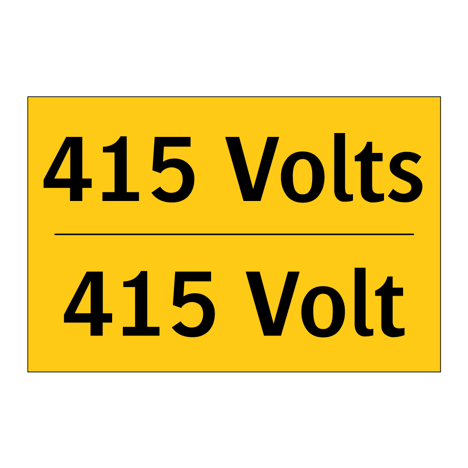 Panneau d'avertissement bilingue avec texte en français : "415 Volts", et en anglais : "415 Volt"