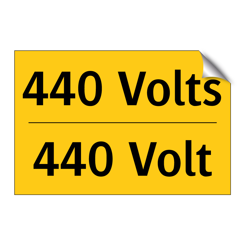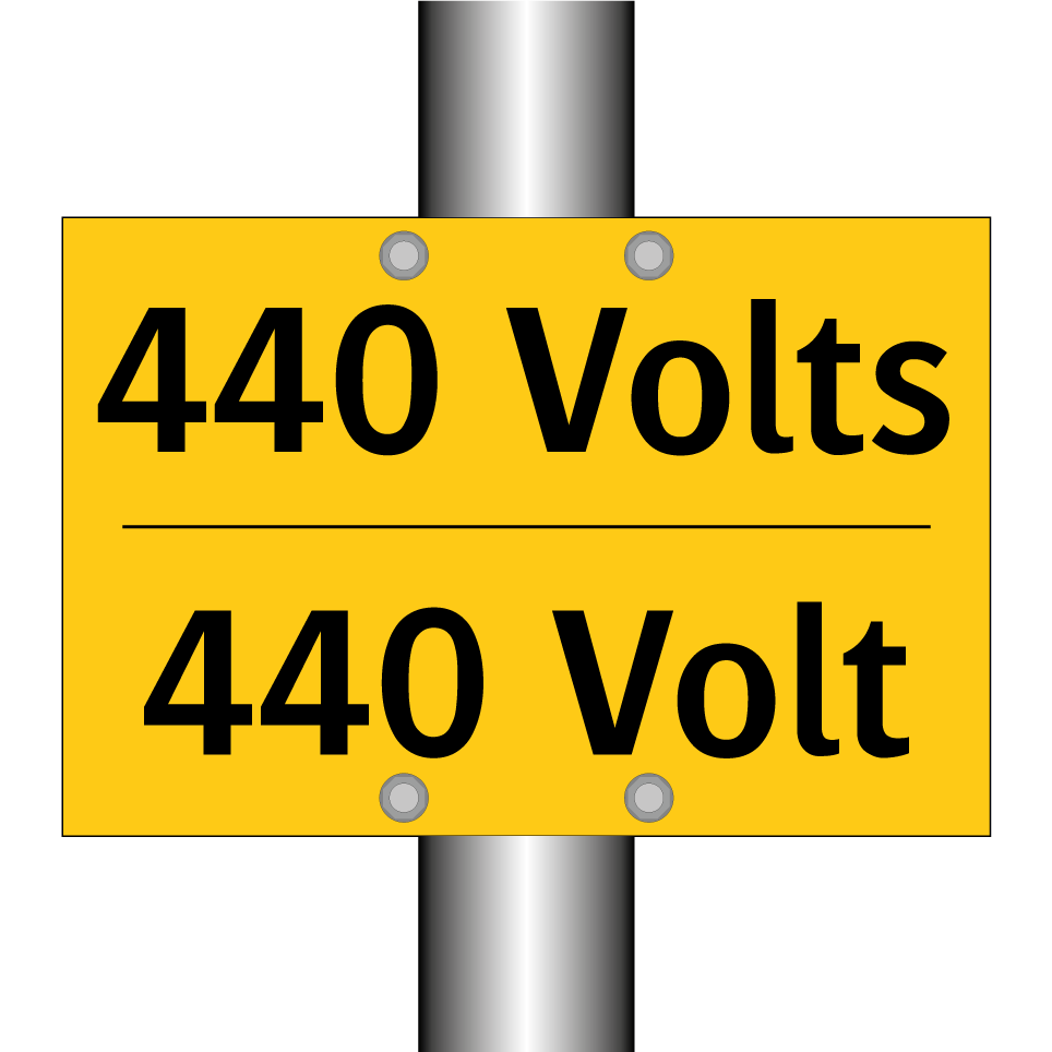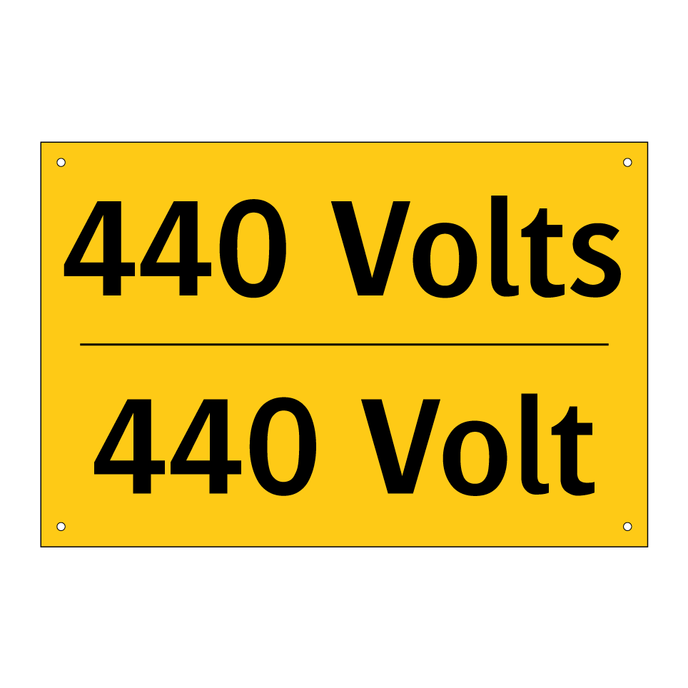 Panneau d'avertissement bilingue avec texte en français : "440 Volts", et en anglais : "440 Volt"