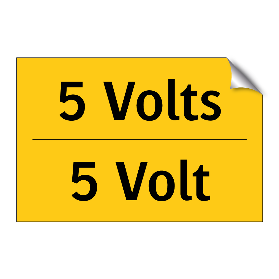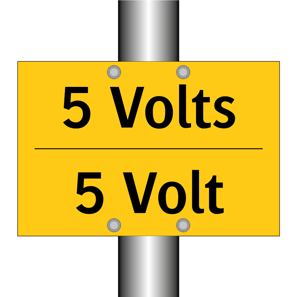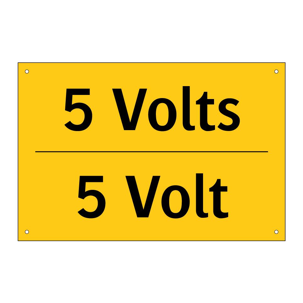 Panneau d'avertissement bilingue avec texte en français : "5 Volts", et en anglais : "5 Volt"
