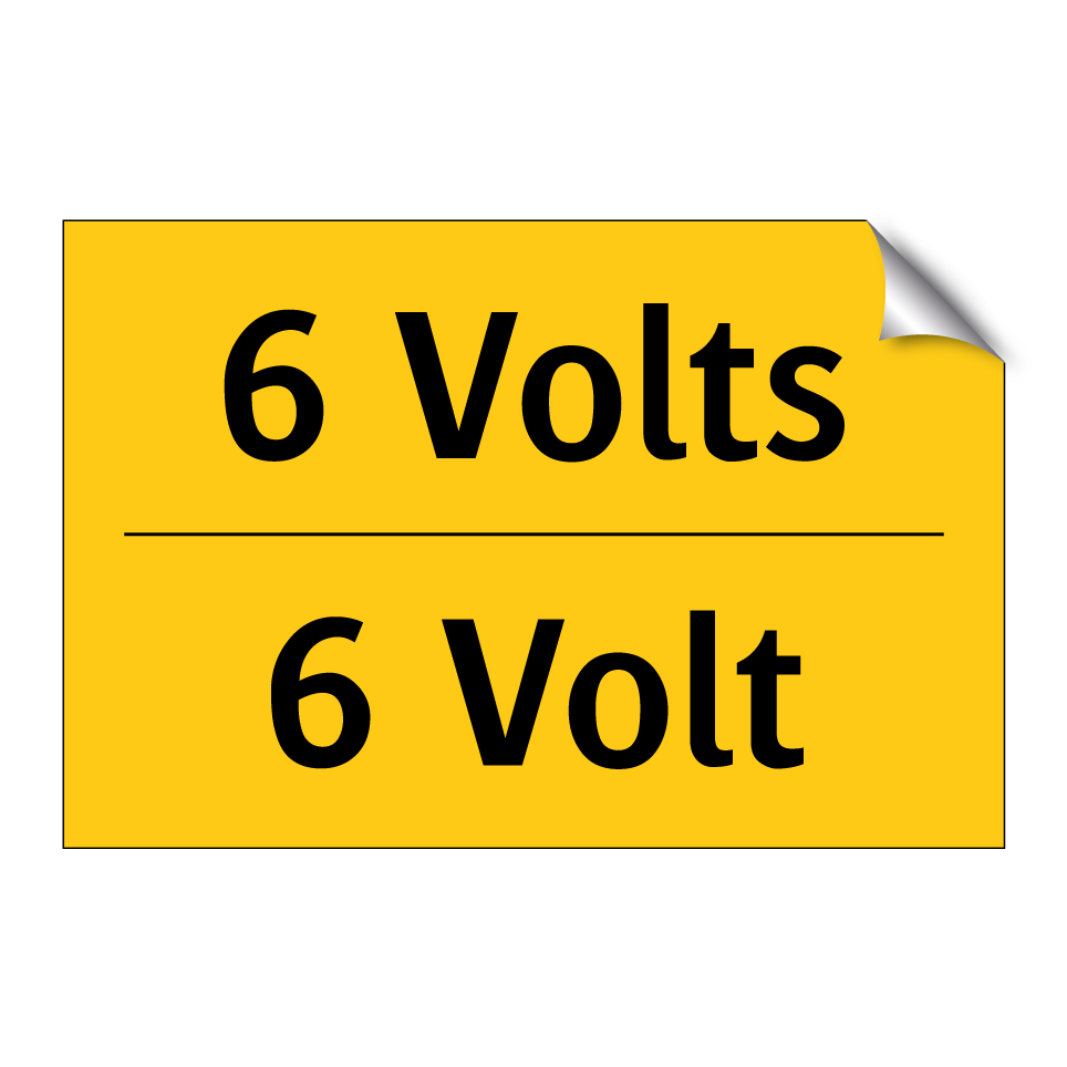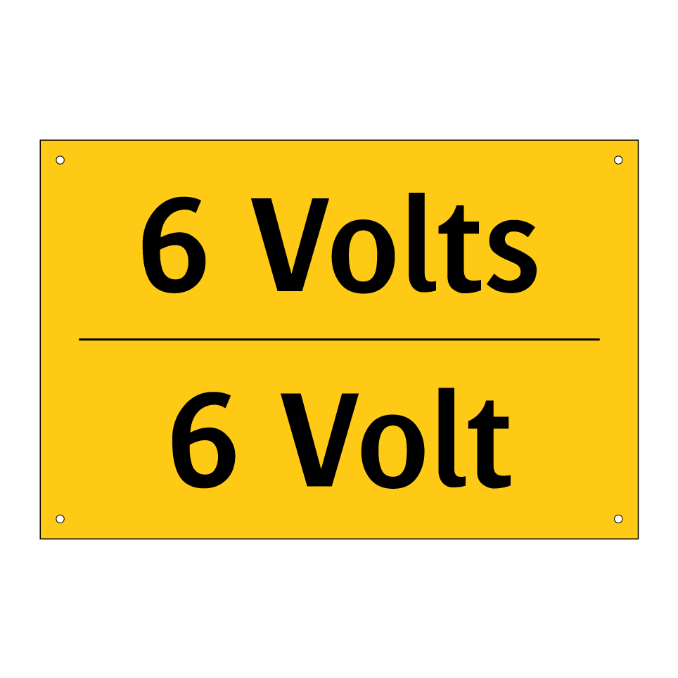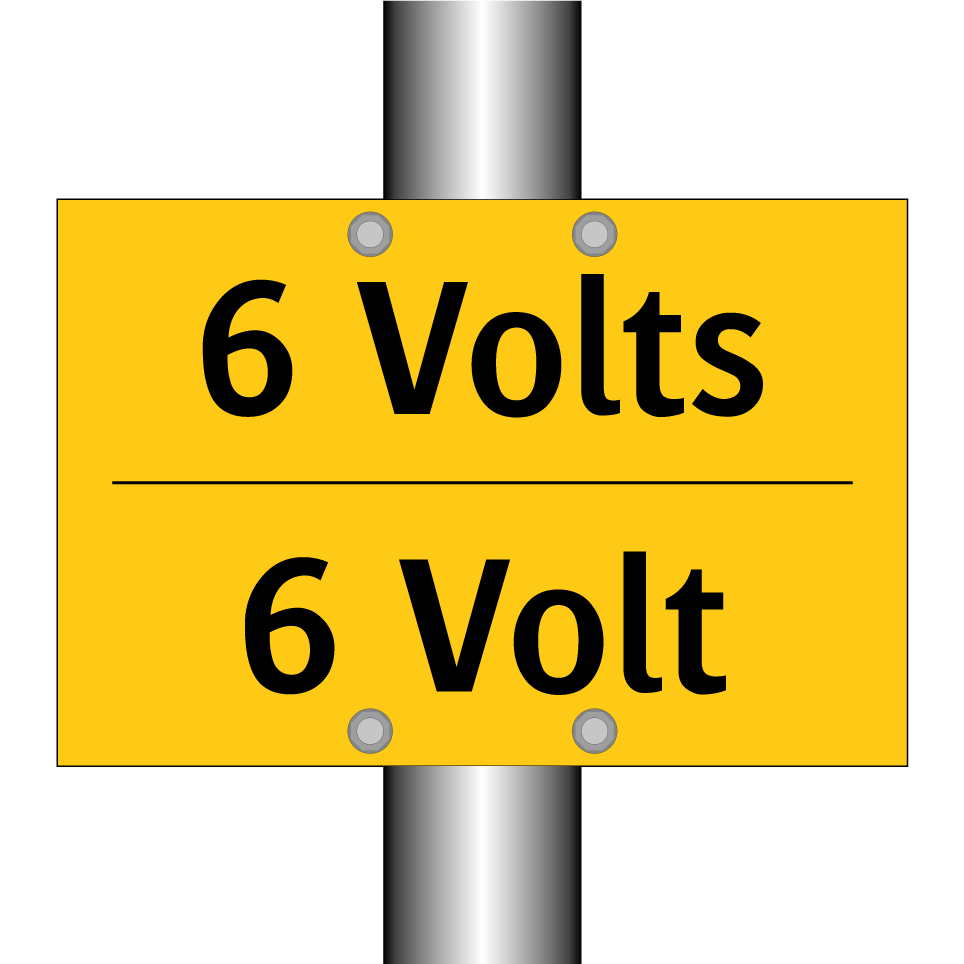 Panneau d'avertissement bilingue avec texte en français : "6 Volts", et en anglais : "6 Volt"
