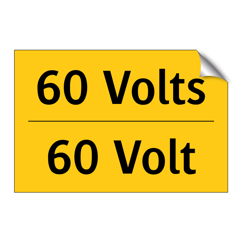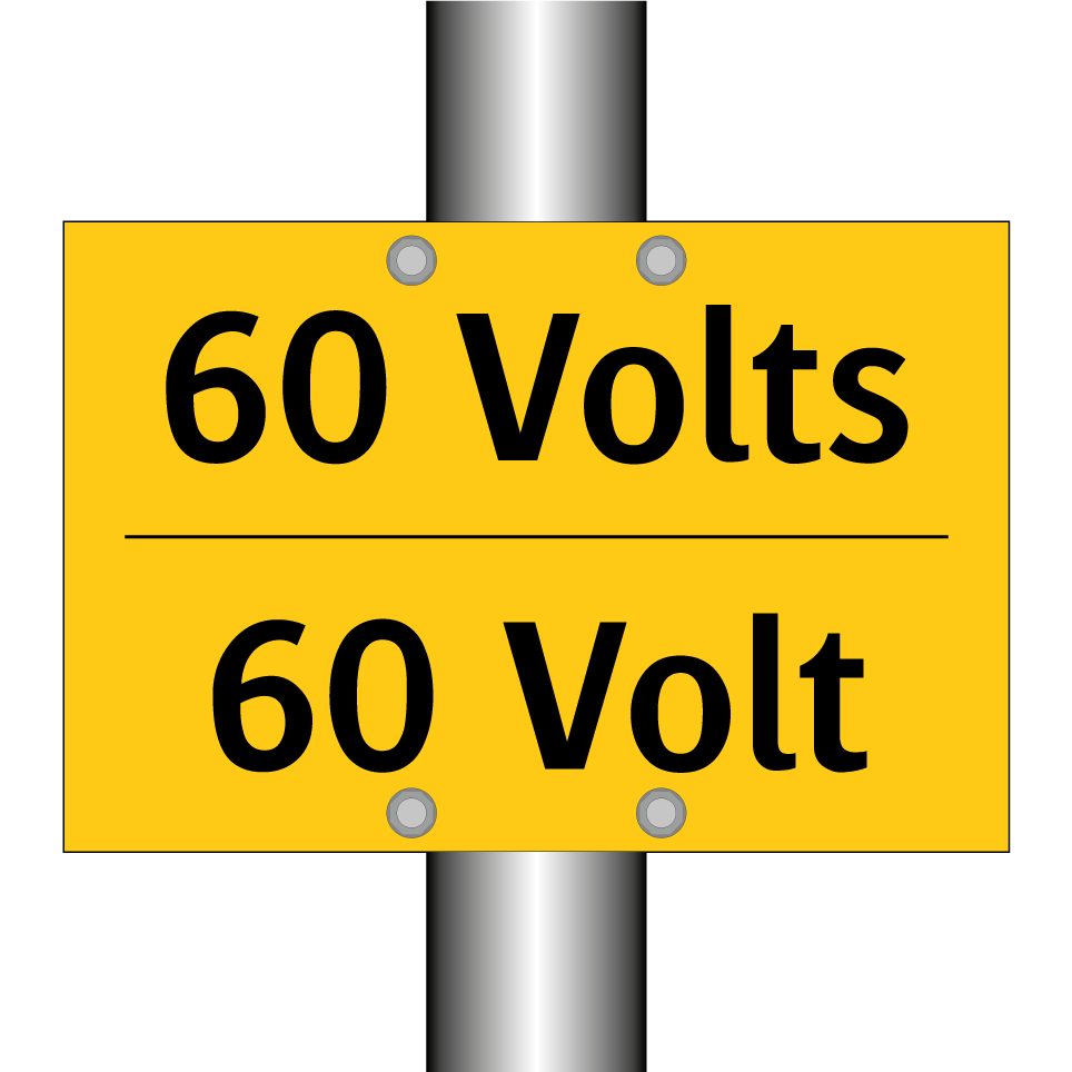 Panneau d'avertissement bilingue avec texte en français : "60 Volts", et en anglais : "60 Volt"