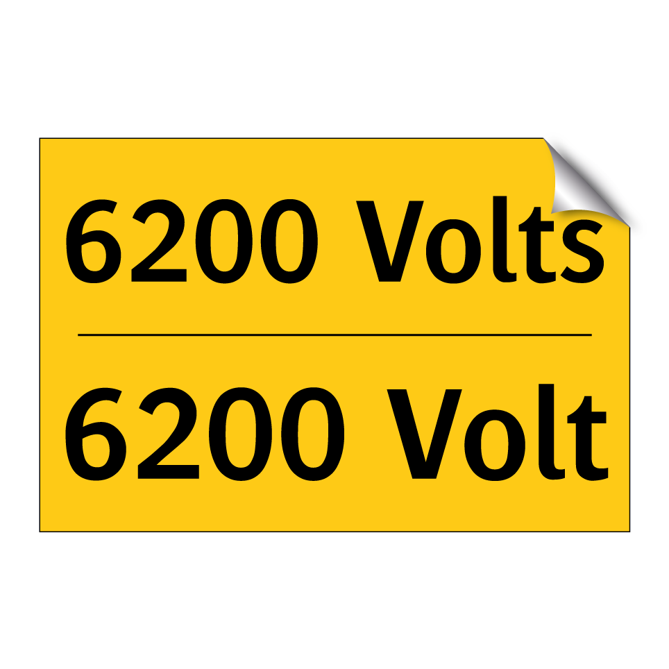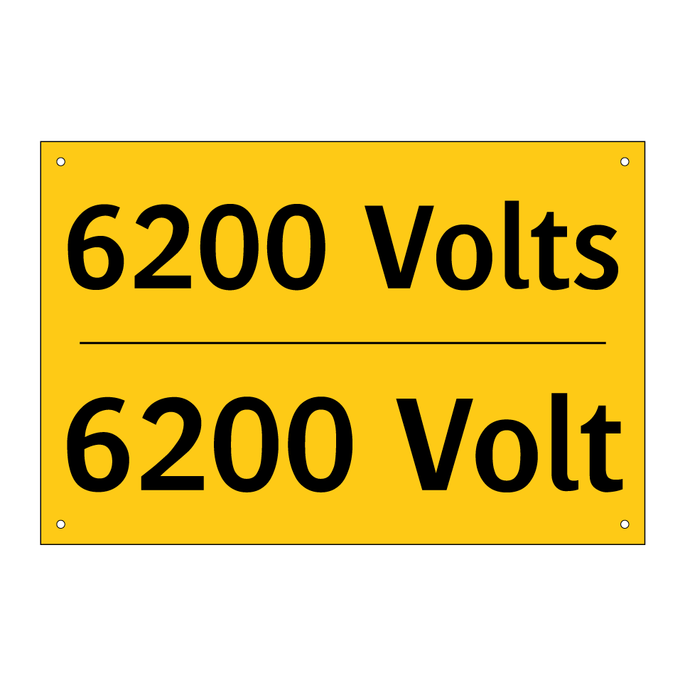 Panneau d'avertissement bilingue avec texte en français : "6200 Volts", et en anglais : "6200 Volt"