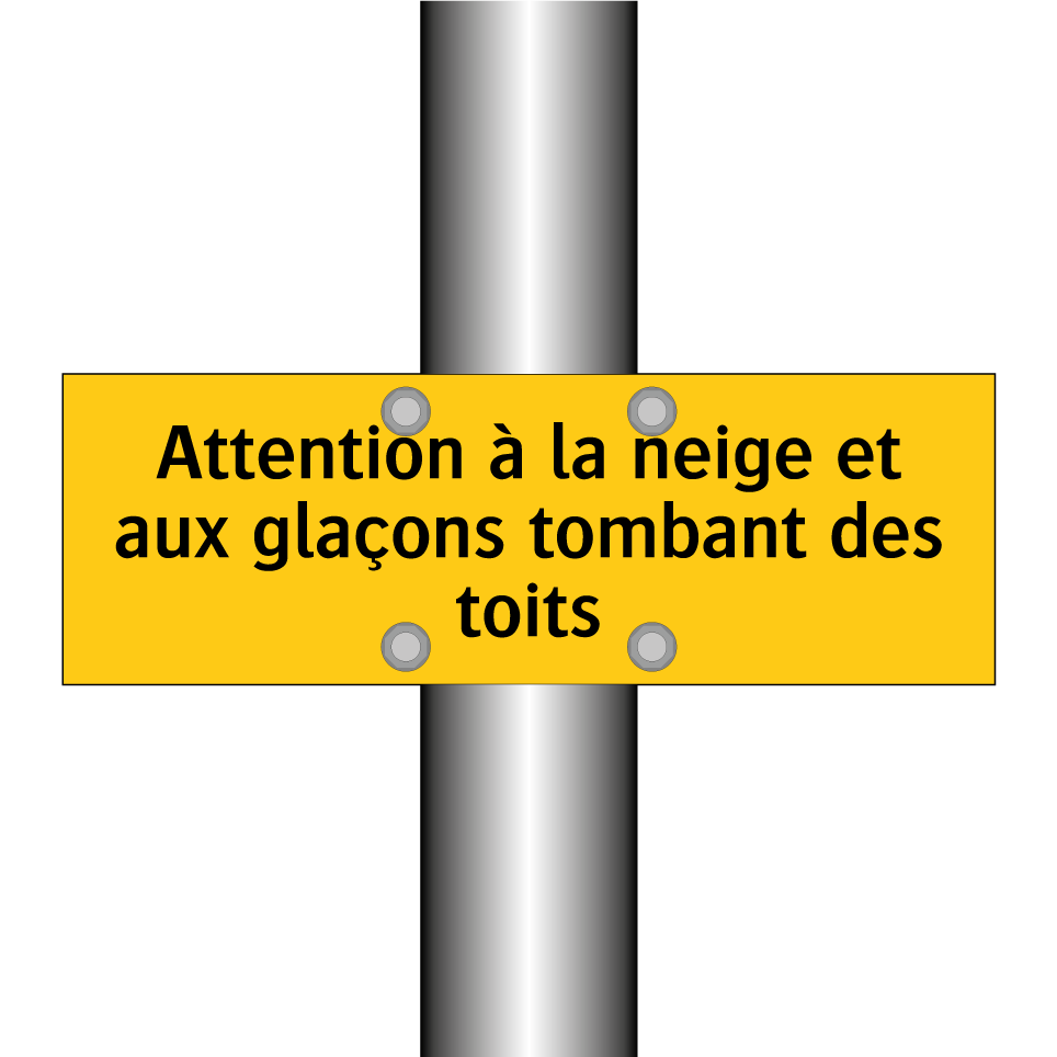 Panneau d'avertissement avec le texte : "Attention à la neige et aux glaçons tombant des toits"