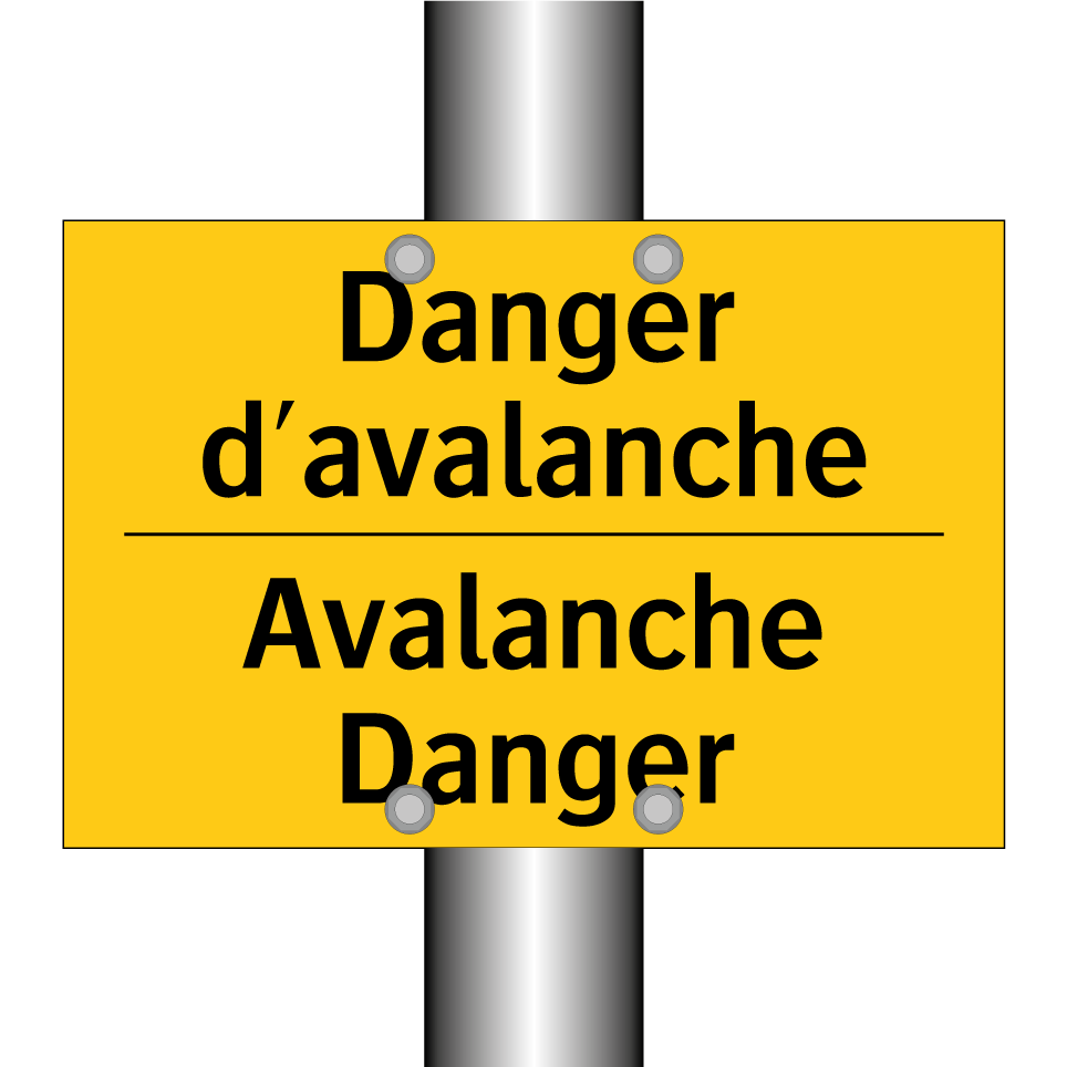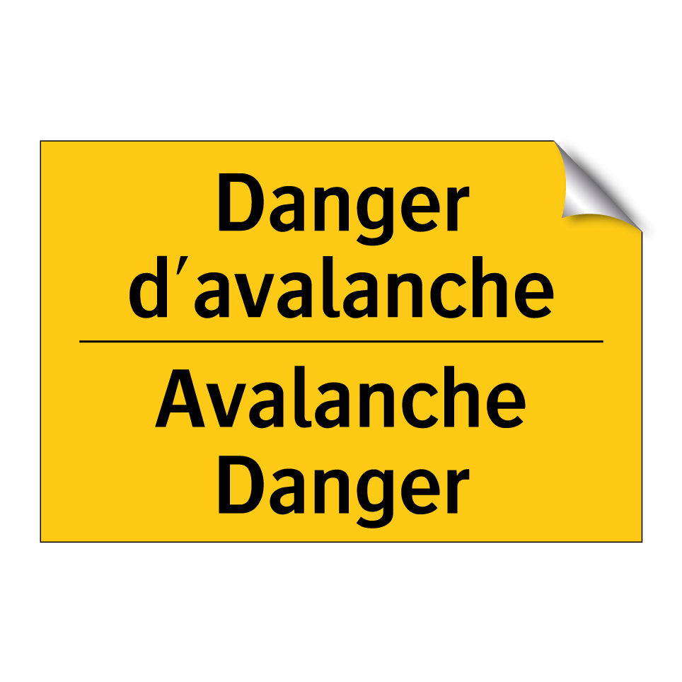 Panneau d'avertissement bilingue avec texte en français : "Danger d'avalanche", et en anglais : "Avalanche Danger"
